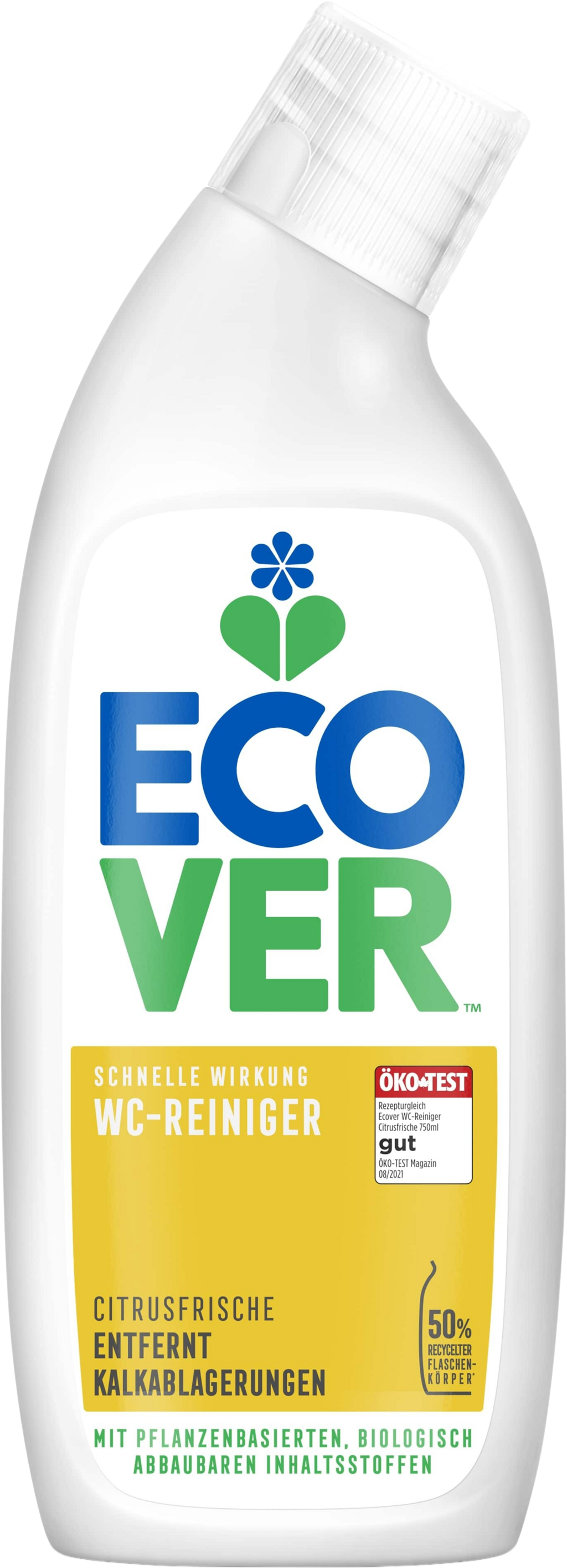 Ez az Ecover WC tisztító a 3 az 1 formula által hatékonyan tisztít és vízkőtelenít, valamint kellemesen friss citrus illatot hagy maga után. Könnyedén feoldja a legmakacsabb maradványokat is, mint a mészlerakódás vagy vizelet. Az eredmény: ragyogó tisztaság. A termék erős vagy maró hatású vegyszer mentes. Növényi és ásványi alapú összetevők, biológiailiag teljesen lebomlóak.