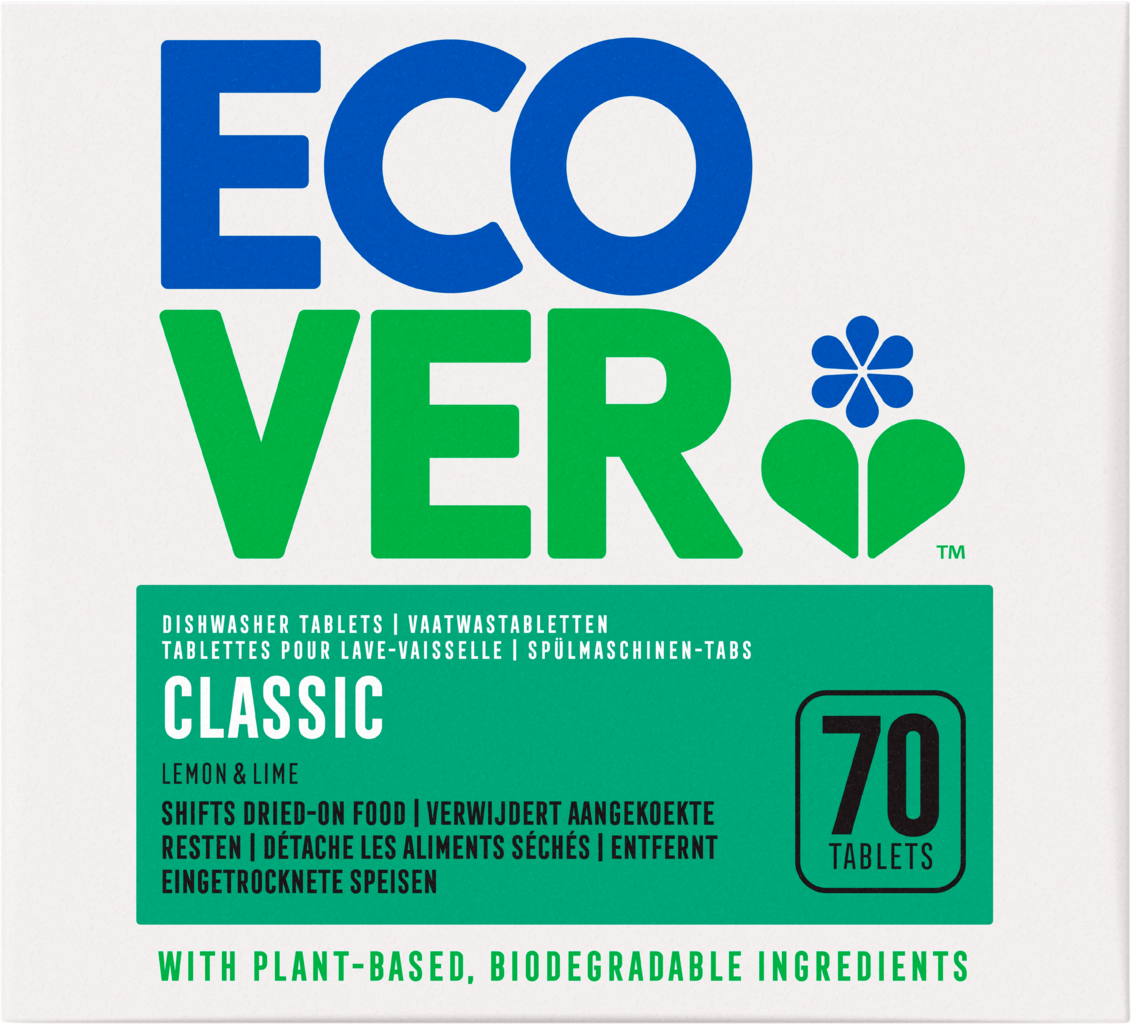 Az Ecover Classic Mosogatógép tabletta a cellulóz-tenzidek segítségével hatékonyan eltávolítja a makacs ételmaradványokat, az odaégett ételt és zsírt.