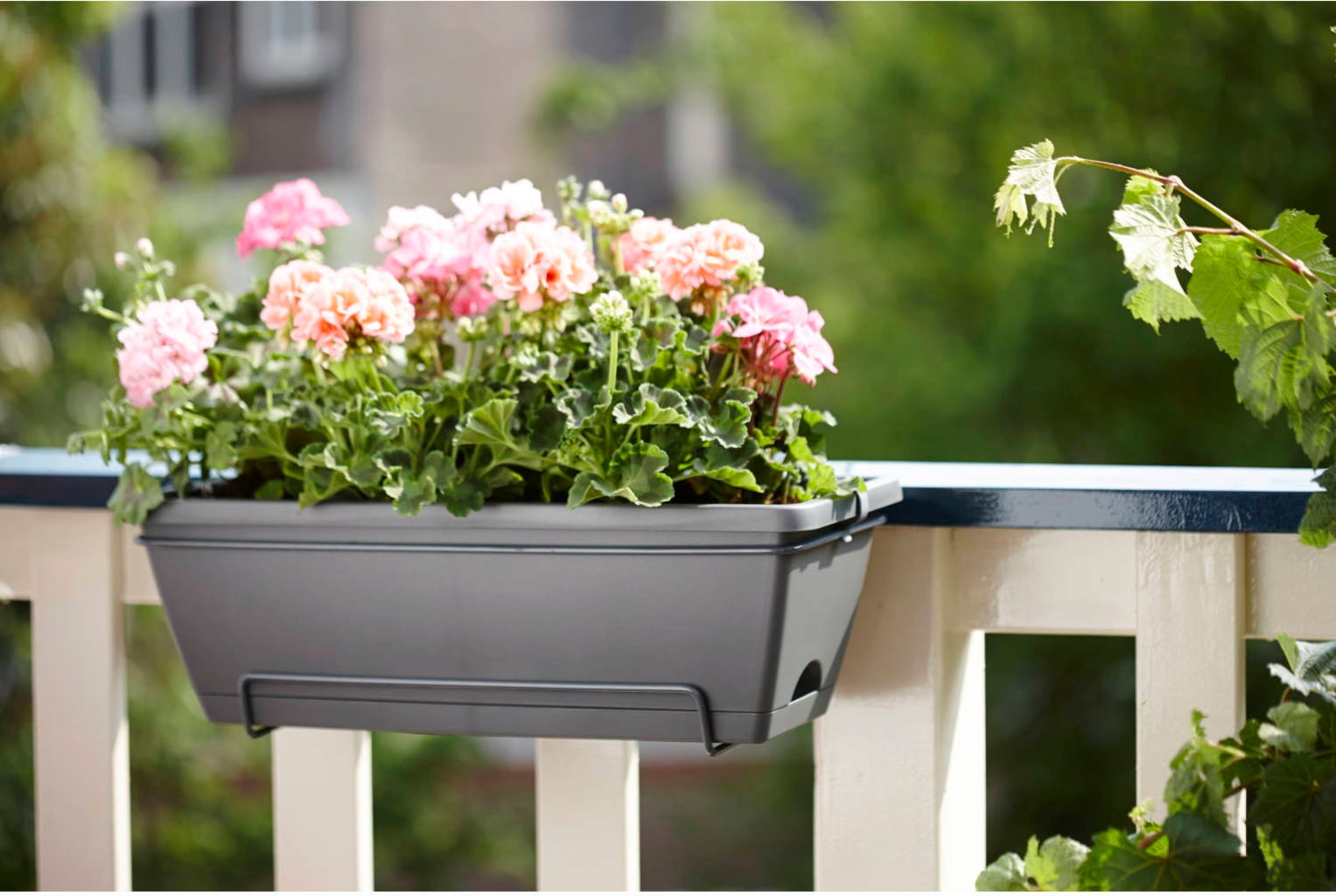 A praktikus barcelona erkélydoboz all-in-1 készlettel pillanatok alatt zöld oázissá varázsolhatja erkélyét. Kevés erőfeszítés viszont nagyszerű hatás: A termék könnyen felakasztható az erkély korlátjára. A készletben található alátét tárolja a felesleges eső- és öntözővizet, majd szükség esetén ellátja vele a növényeket.