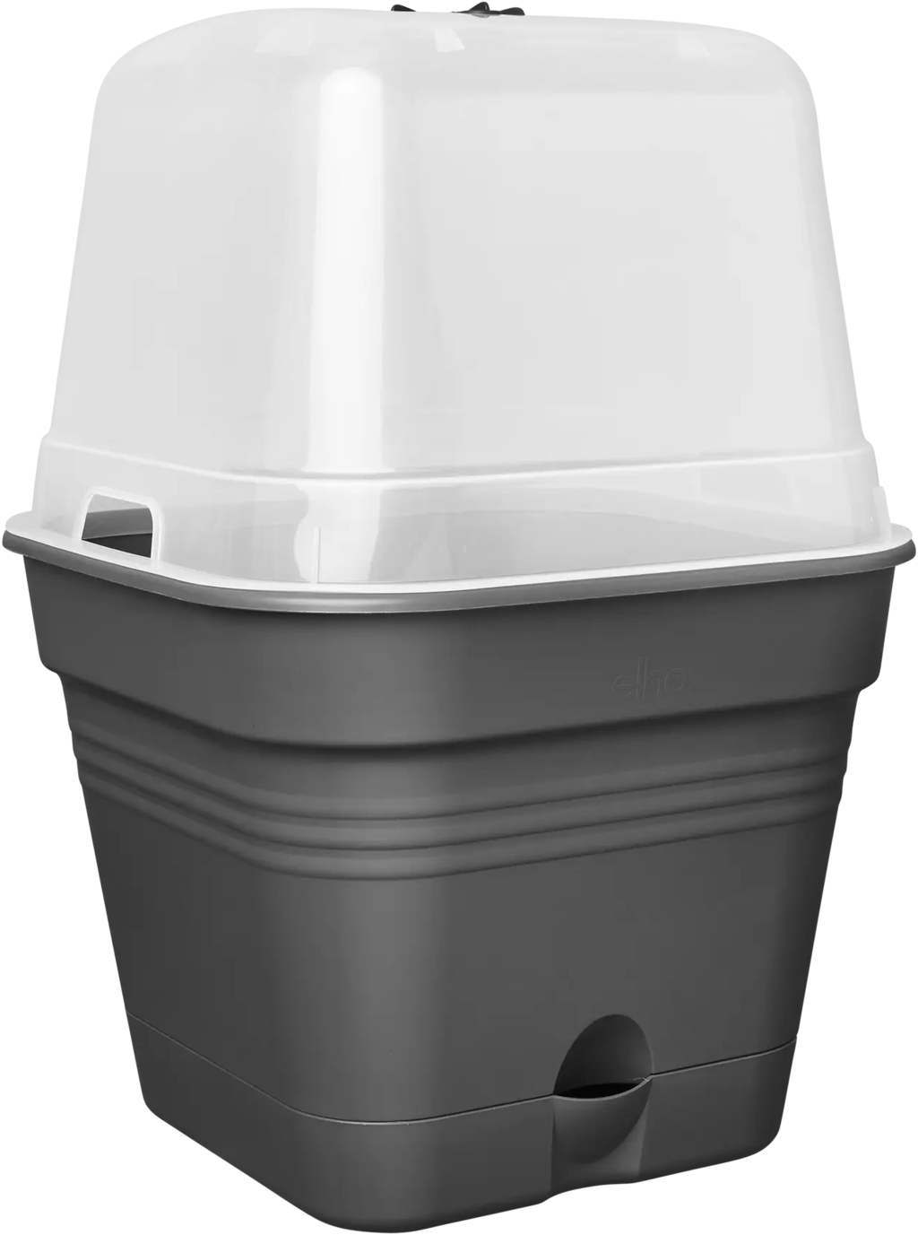 Ezzel az újrahasznosított műanyagból készült, négyzet alakú termesztőedénnyel nagyon egyszerű a gyümölcs-, zöldség- és fűszernövények termesztése, hiszen optimális növekedési feltételeket teremt a növényeknek. A beépített víztartálynak köszönhetően növényeinek mindig elegendő víz áll rendelkezésére, és nem kell állandóan az öntözés miatt aggódni. A mellékelt láda és fedél megvédi növényeit a közvetlen napfénytől, valamint a rovaroktól és a madaraktól, és optimális növekedési klímát biztosít.