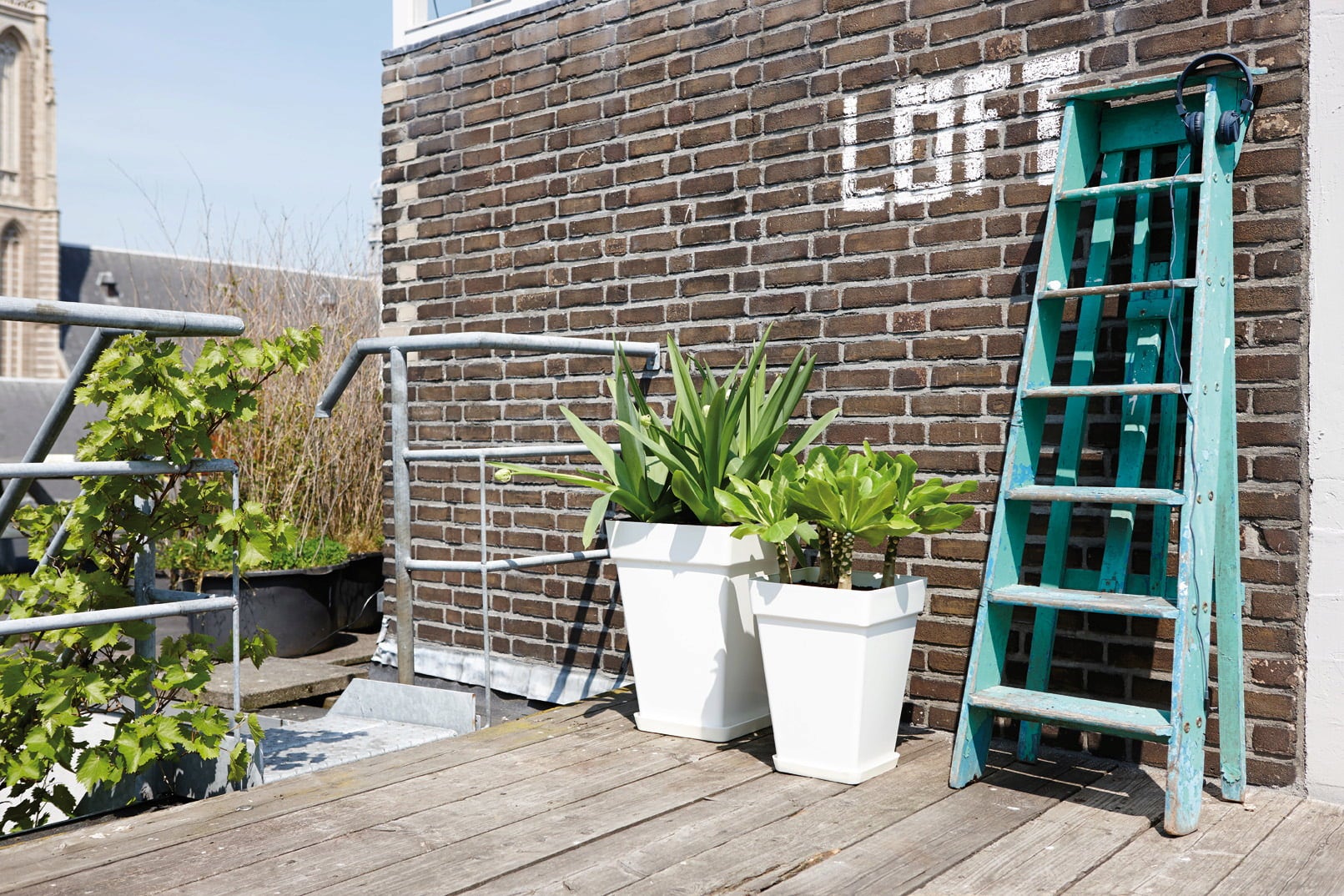 Ez az egyszerű, modern cserép nem csak az ajtó mellett mutat különösen jól. Bárhol a kertben, a teraszon vagy az erkélyen is igazi kincs. Különlegessége: Beépített víztartállyal rendelkezik, amely gondoskodik arról, hogy növények mindig elegendő vízzel rendelkezzenek, és ne kelljen olyan gyakran öntözni. Aligha lehetne praktikusabb.