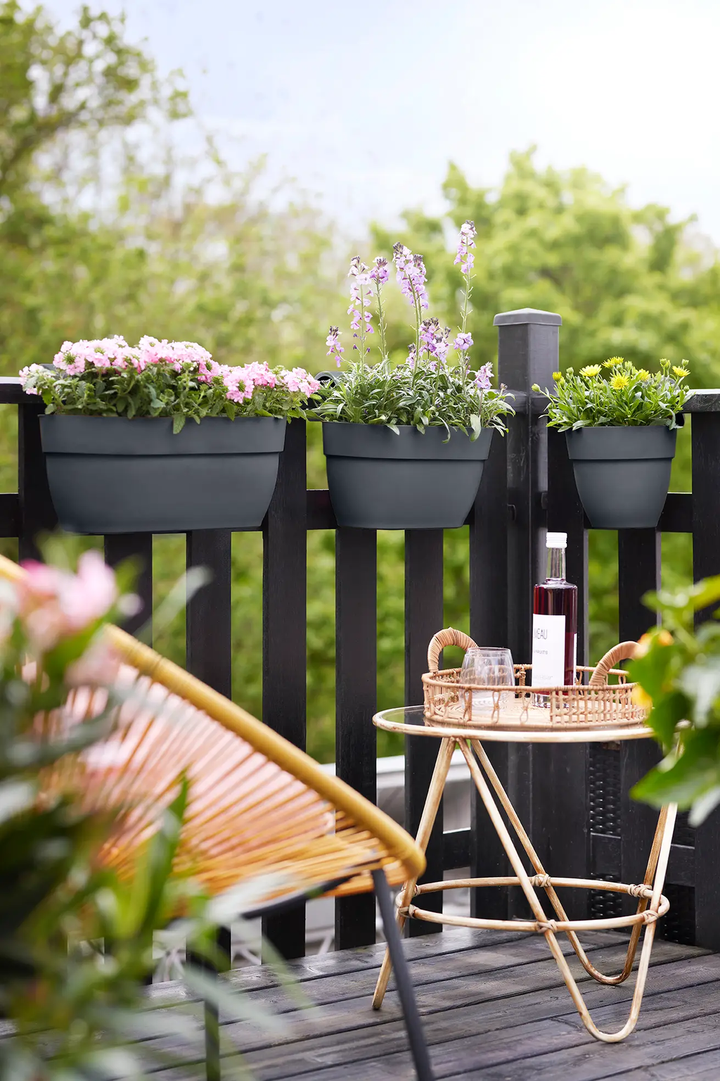 Az elho vidám felakasztható virágcserepével a jó hangulat garantált - a nagy színválaszték és a harmonikusan lekerekített forma az erkély kedvenc darabjává teszi. Praktikus kampóinak köszönhetően pillanatok alatt a korlátra rögzíthető, sőt ugyanolyan gyorsan el is távolítható, így bármikor újratelepíthető. Nagyon különleges, szemet gyönyörködtető termék, amelyet többé nem akar nélkülözni!