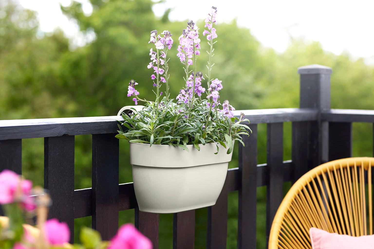 Az elho vidám felakasztható virágcserepével a jó hangulat garantált - a nagy színválaszték és a harmonikusan lekerekített forma az erkély kedvenc darabjává teszi. Praktikus kampóinak köszönhetően pillanatok alatt a korlátra rögzíthető, sőt ugyanolyan gyorsan el is távolítható, így bármikor újratelepíthető. Nagyon különleges, szemet gyönyörködtető termék, amelyet többé nem akar nélkülözni!