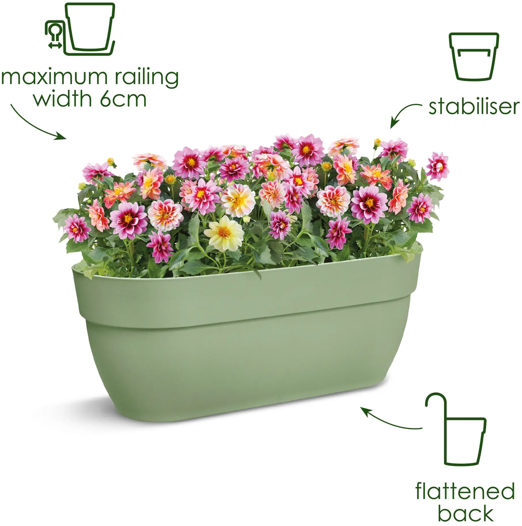 Az elho vidám felakasztható virágcserepével a jó hangulat garantált - a nagy színválaszték és a harmonikusan lekerekített forma az erkély kedvenc darabjává teszi. Praktikus kampóinak köszönhetően pillanatok alatt a korlátra rögzíthető, sőt ugyanolyan gyorsan el is távolítható, így bármikor újratelepíthető. Nagyon különleges, szemet gyönyörködtető termék, amelyet többé nem akar nélkülözni!