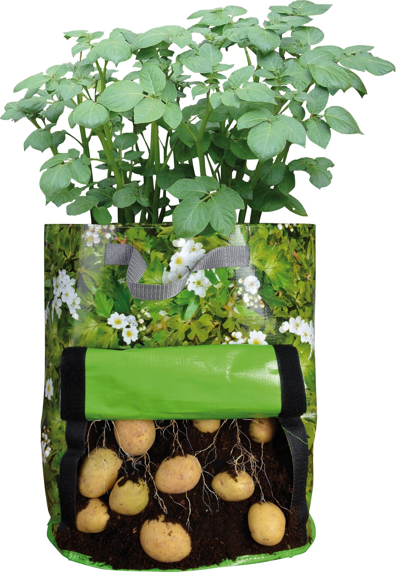- Betakarításkor egyszerűen öntse ki a burgonya növénytáskát. Az egyes burgonyák eltávolításához nyissa ki a táska oldalát a praktikus tépőzárral.