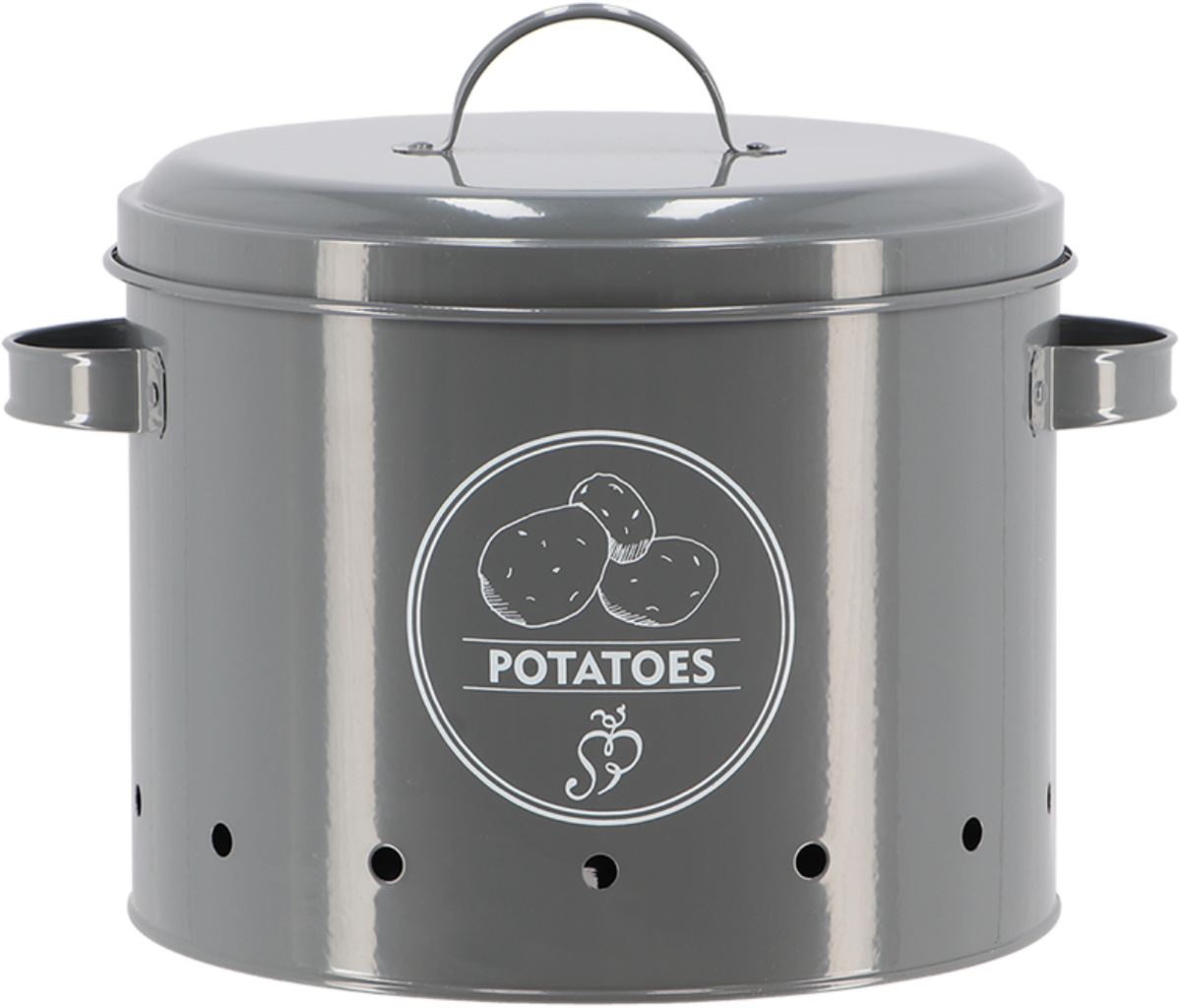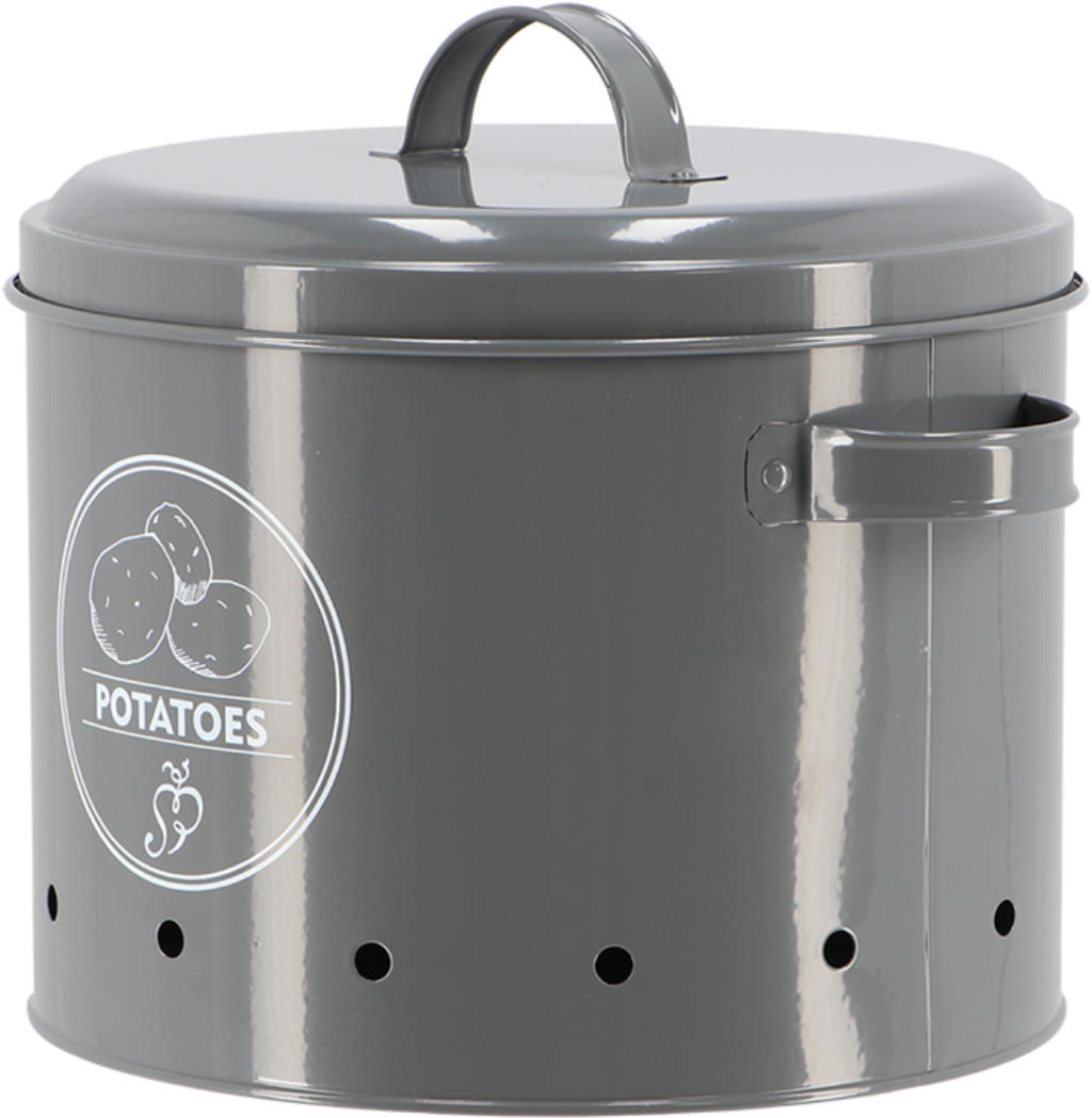 Ez a tároló edény ideális környezetet biztosít a burgonyának, jó szellőzésű, sötét helyet. Az oldalsó lyukak optimális szellőzést biztosítanak, így a burgonya sokáig friss marad. A szénacél anyag hosszú élettartamot biztosít, így tartósan örömét lelheti az edényben. Mindemellett pedig vizuálisan is vonzó a tároló edény, időtlen antracit színben pompázik, szép nyomattal ellátva.