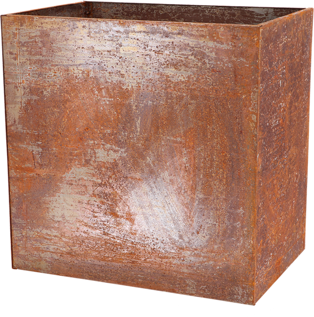A növényláda idővel bájos patinát fejleszt, ahogy a szél és az időjárás hatására tovább rozsdásodik. Ez rusztikus és autentikus megjelenést kölcsönöz neki, amely vonzó kontrasztot alkot a természetes környezettel.