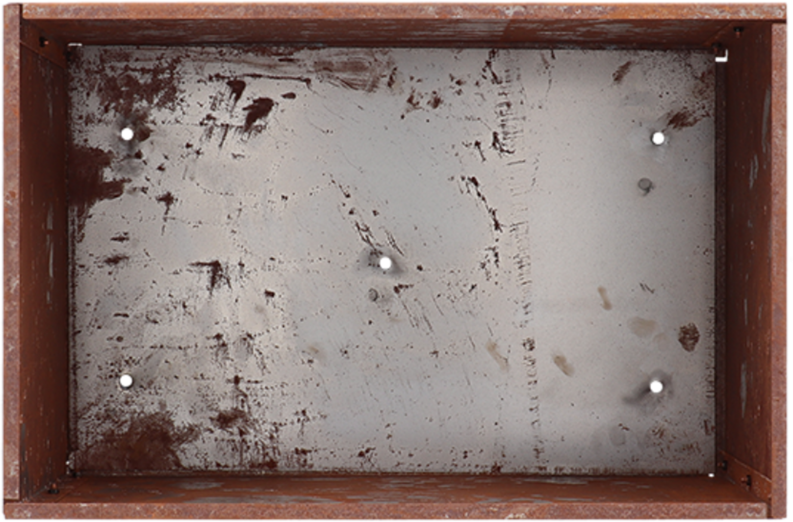 A növényláda idővel bájos patinát fejleszt, ahogy a szél és az időjárás hatására tovább rozsdásodik. Ez rusztikus és autentikus megjelenést kölcsönöz neki, amely vonzó kontrasztot alkot a természetes környezettel.