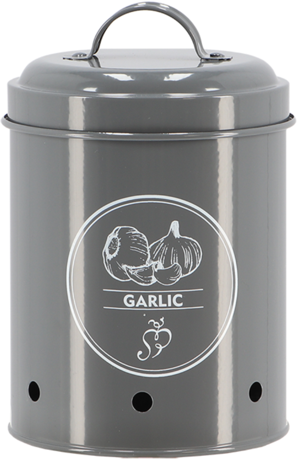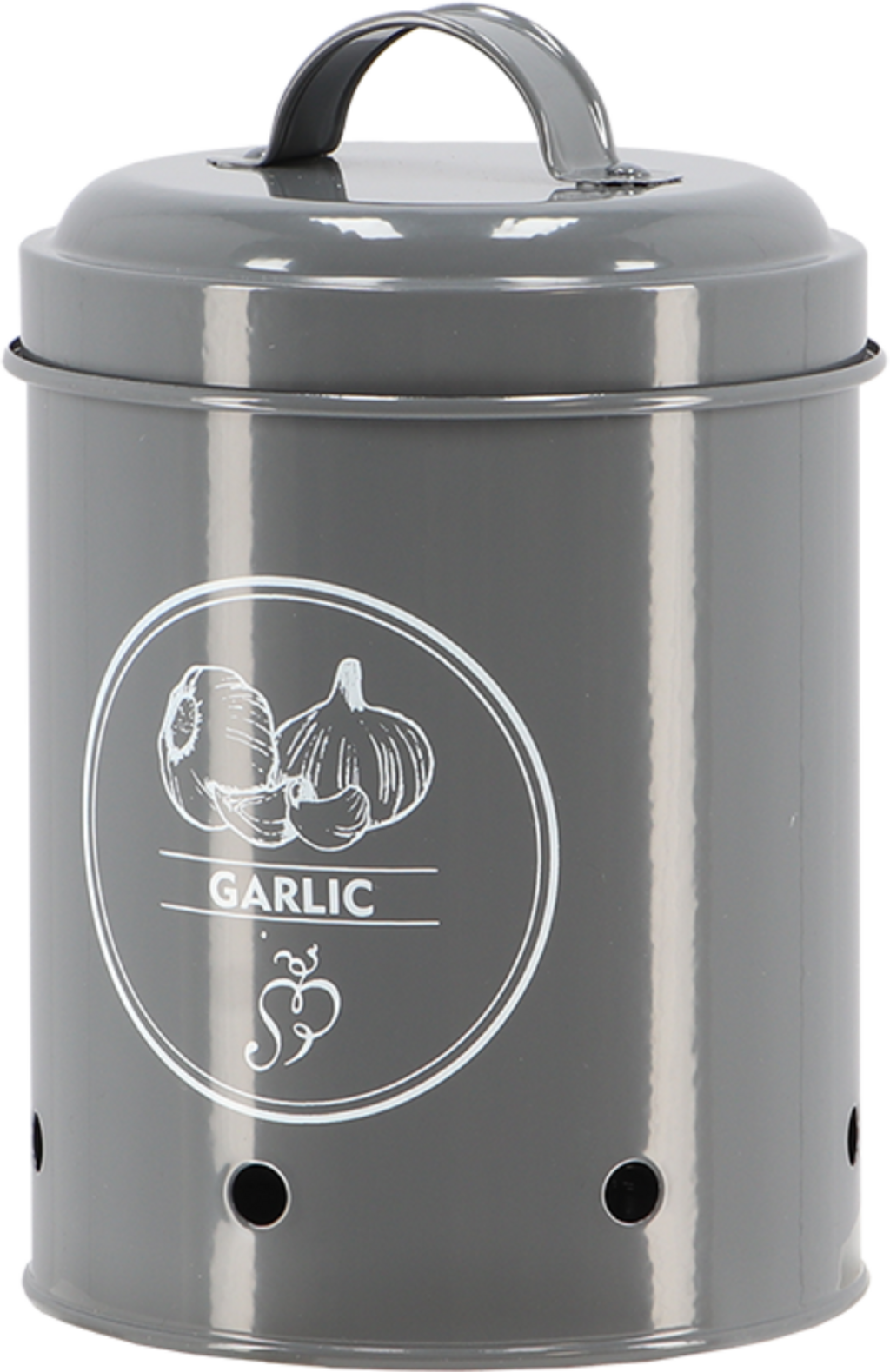 Ez a tároló edény ideális környezetet biztosít a fokhagymának, jó szellőzésű, sötét helyet. Az oldalsó lyukak optimális szellőzést biztosítanak, így a fokhagyma sokáig friss marad. A szénacél anyag hosszú élettartamot biztosít, így tartósan örömét lelheti az edényben. Mindemellett pedig vizuálisan is vonzó a tároló edény, időtlen antracit színben pompázik, szép nyomattal ellátva.