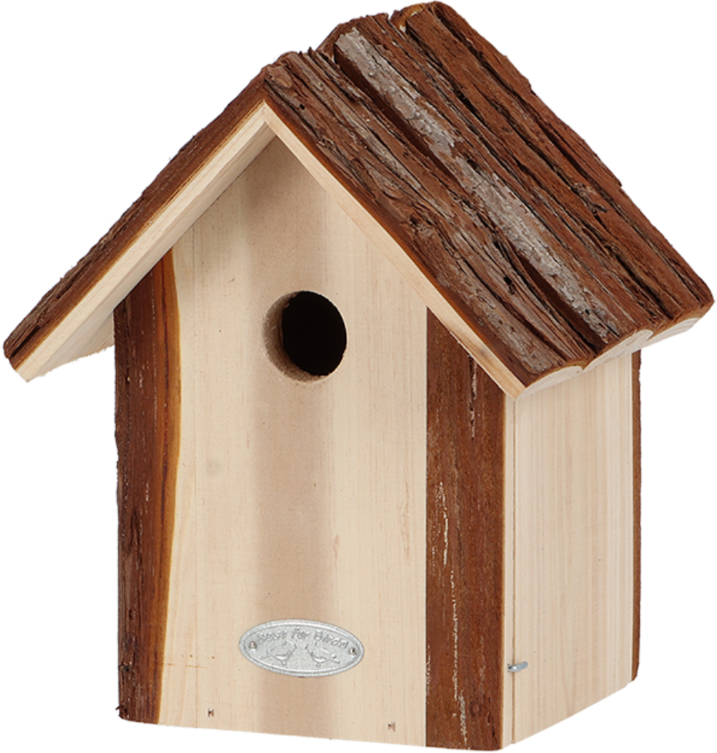 Ez a szép fészekdoboz ideális hely a kékcinegék számára, ugyanis megbízható védelmet nyújt számukra a viharokkal és a ragadozókkal szemben. Emellett tökéletes hely az utódok biztonságos nevelésére is. Különlegessége a kéregtető, amely természetes megjelenést kölcsönöz a fészekdoboznak.