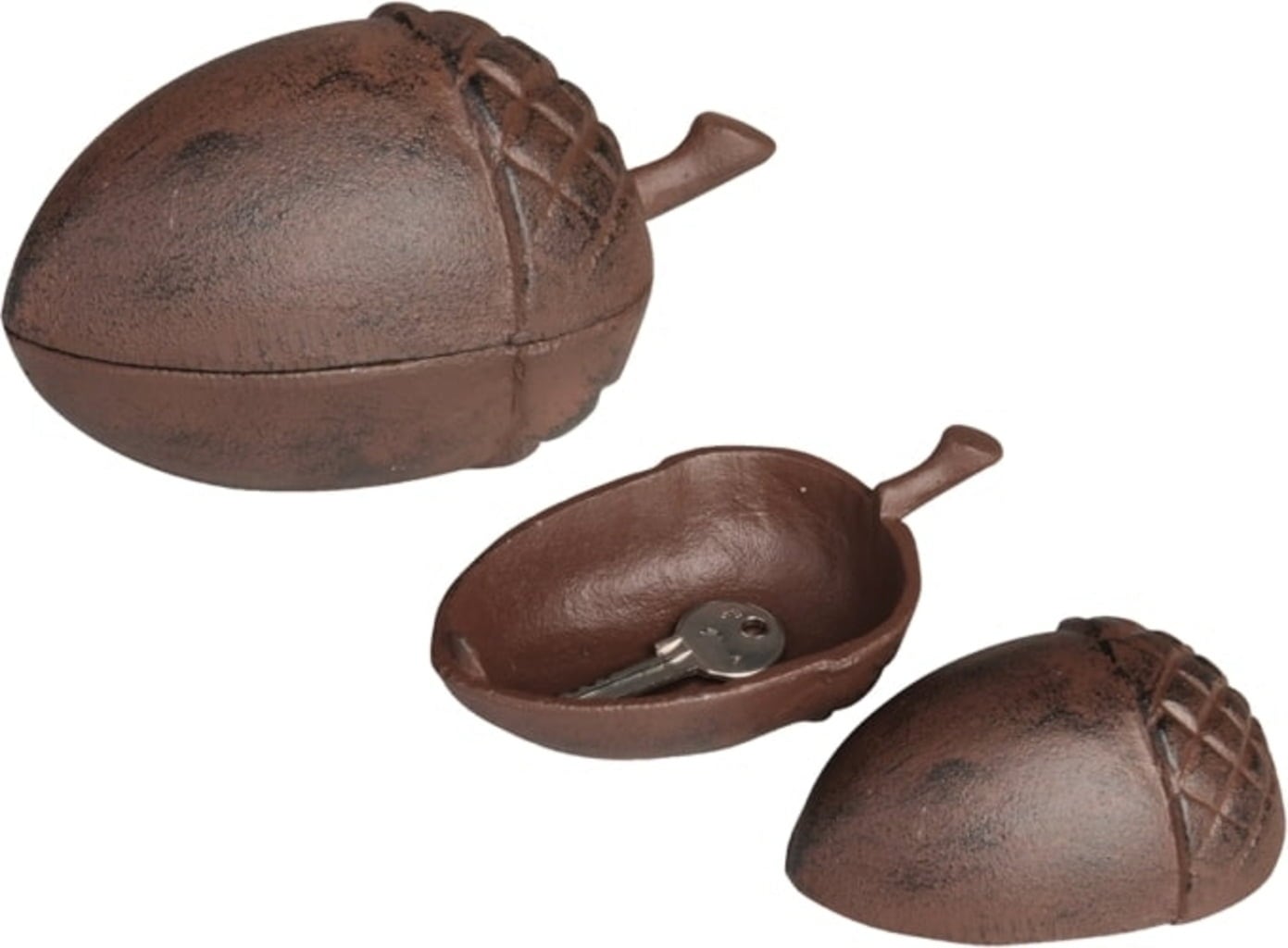 A dekoratív makk, a fedél alatti üreggel, jól mutat valahol a bejárati ajtó vagy a hátsó ajtó környékén. Ez egy rejtekhely kulcs számára. Így soha többé nem zárja ki magát, ha megfeledkezik kulcsairól. Kifinomult és elbűvölő.