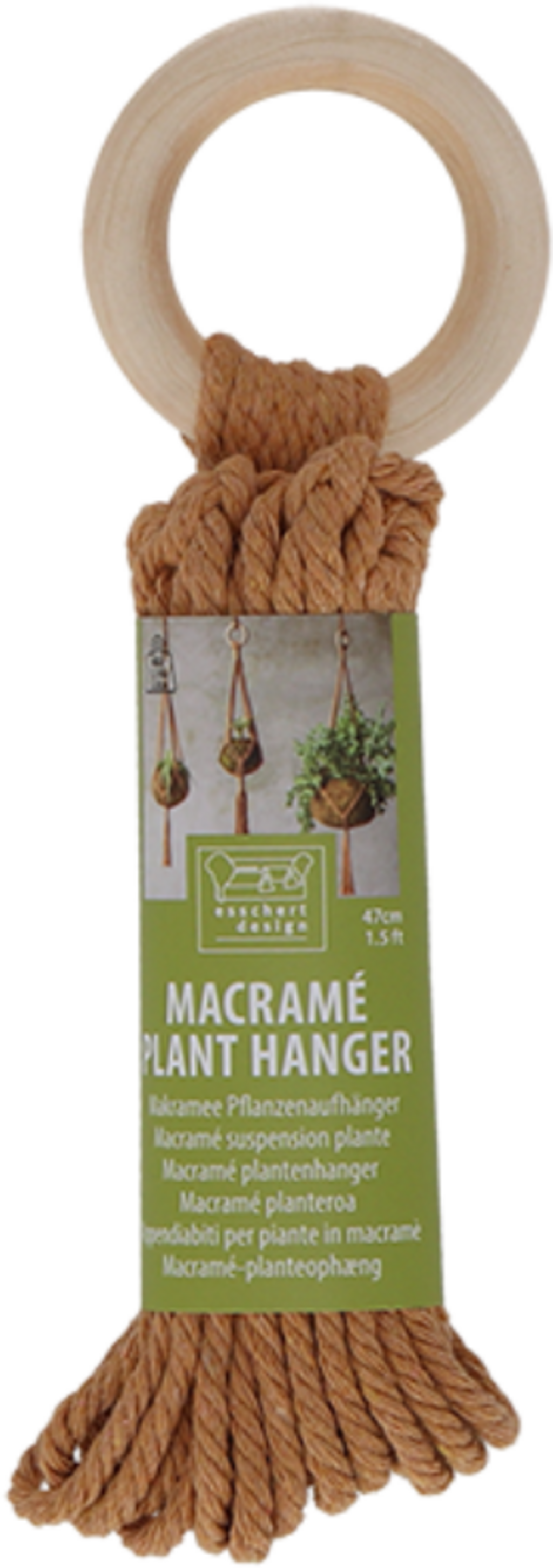 A Makramee növényakasztó nem csak egy csipetnyi Boho sítlust hoz otthonába, hanem lehetővé teszi a virágcserepek stílusos felakasztását is. A fa gyűrű biztonságos akasztásról gondoskodik.