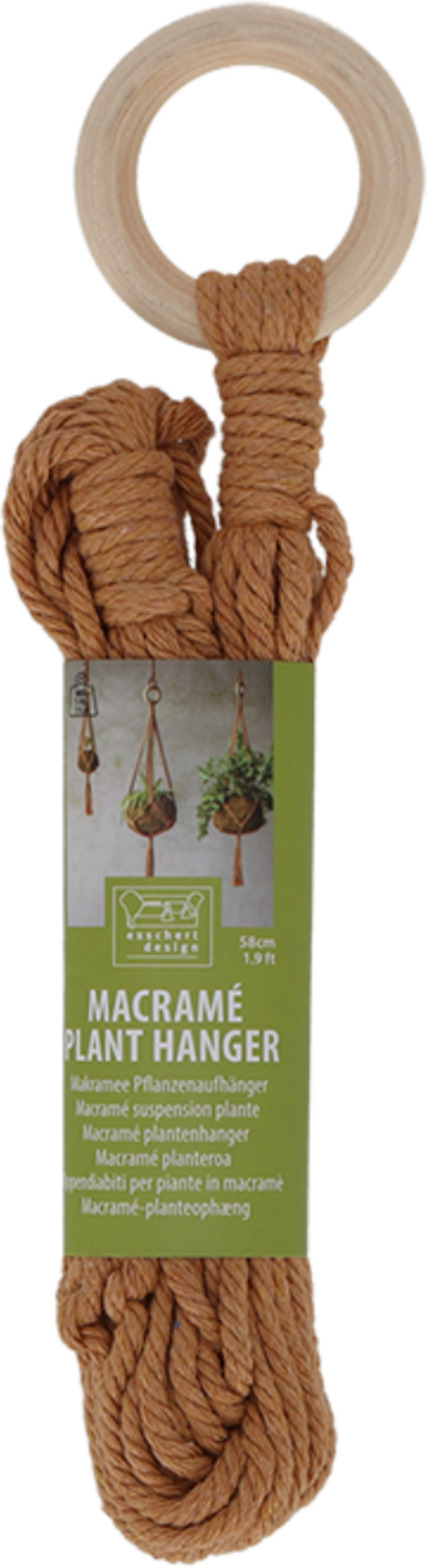 A Makramee növényakasztó nem csak egy csipetnyi Boho sítlust hoz otthonába, hanem lehetővé teszi a virágcserepek stílusos felakasztását is. A fa gyűrű biztonságos akasztásról gondoskodik.