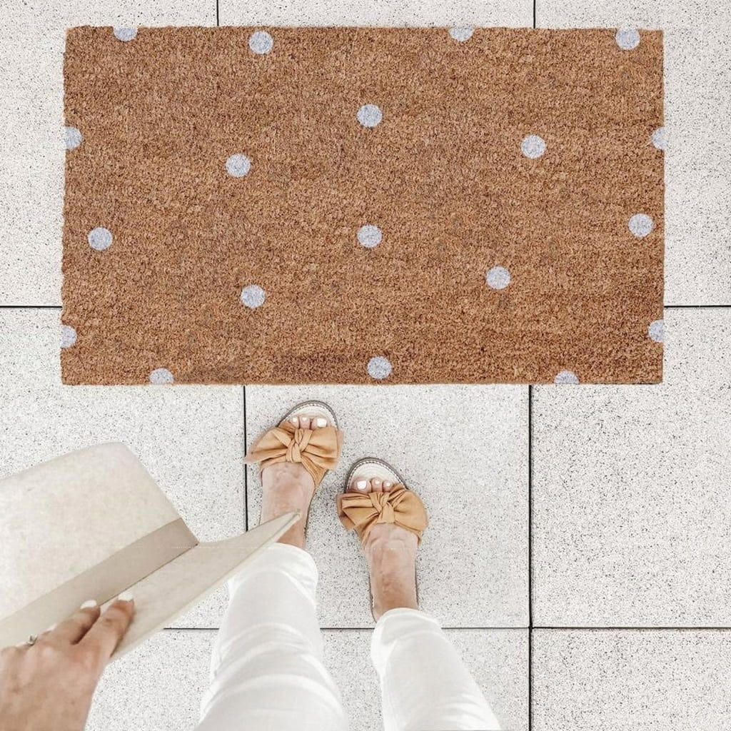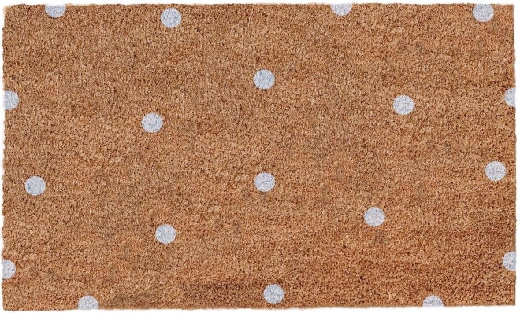 A kiváló minőségű kókuszrostból készült, vidám, pöttyös mintájú lábtörlő meleg fogadtatást nyújt vendégeinek, és jókedvről gondoskodik. A természetes megjelenés és az elegáns kivitel teszi ezt a bájos lábtörlőt tökéletes választássá bármely bejáratba vagy előszobába. Ház- vagy lakásavatókra is remek ajándékötlet.
