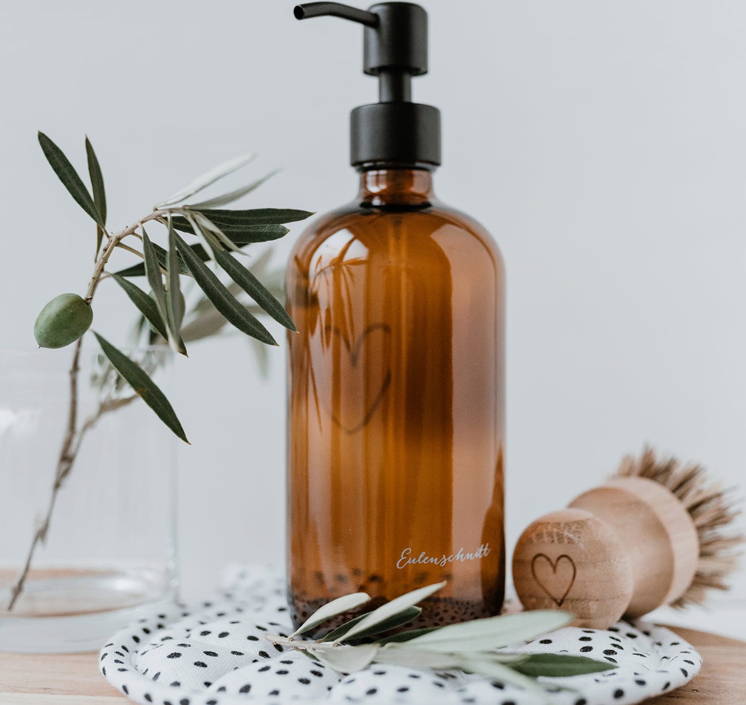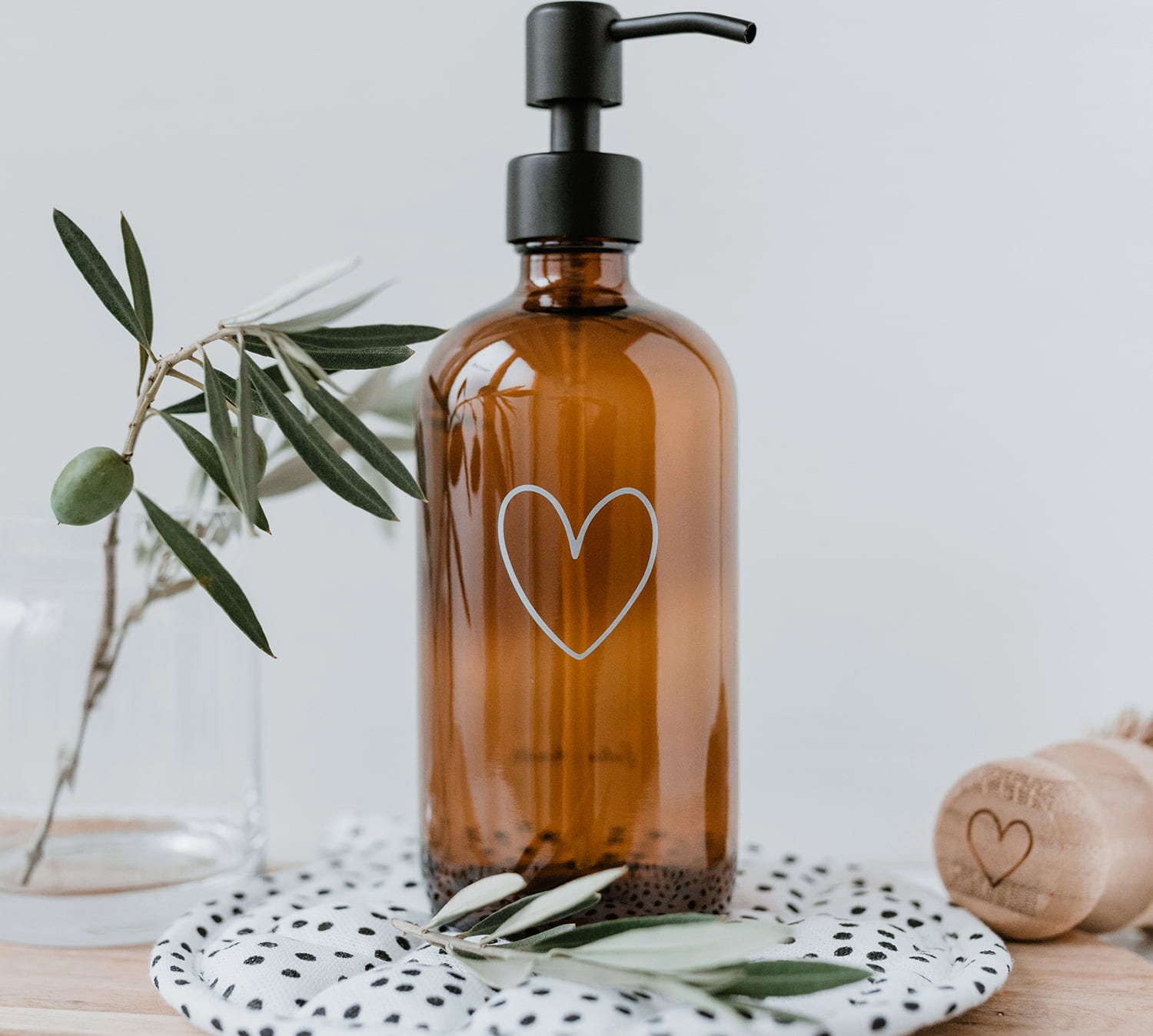 Diszkrét, a lényegre szorítkozó, ugyanakkor rendkívüli. A barna üvegből készült szappanadagoló fehér szívmintával és fém pumpás kupakkal nemcsak praktikus és fenntartható, hanem egyszerű megjelenésével is lenyűgöz. A csomagban található csavaros kupaknak köszönhetően a palack egyszerűen szállítható és újratölthető egy csomagolásmentes üzletben.