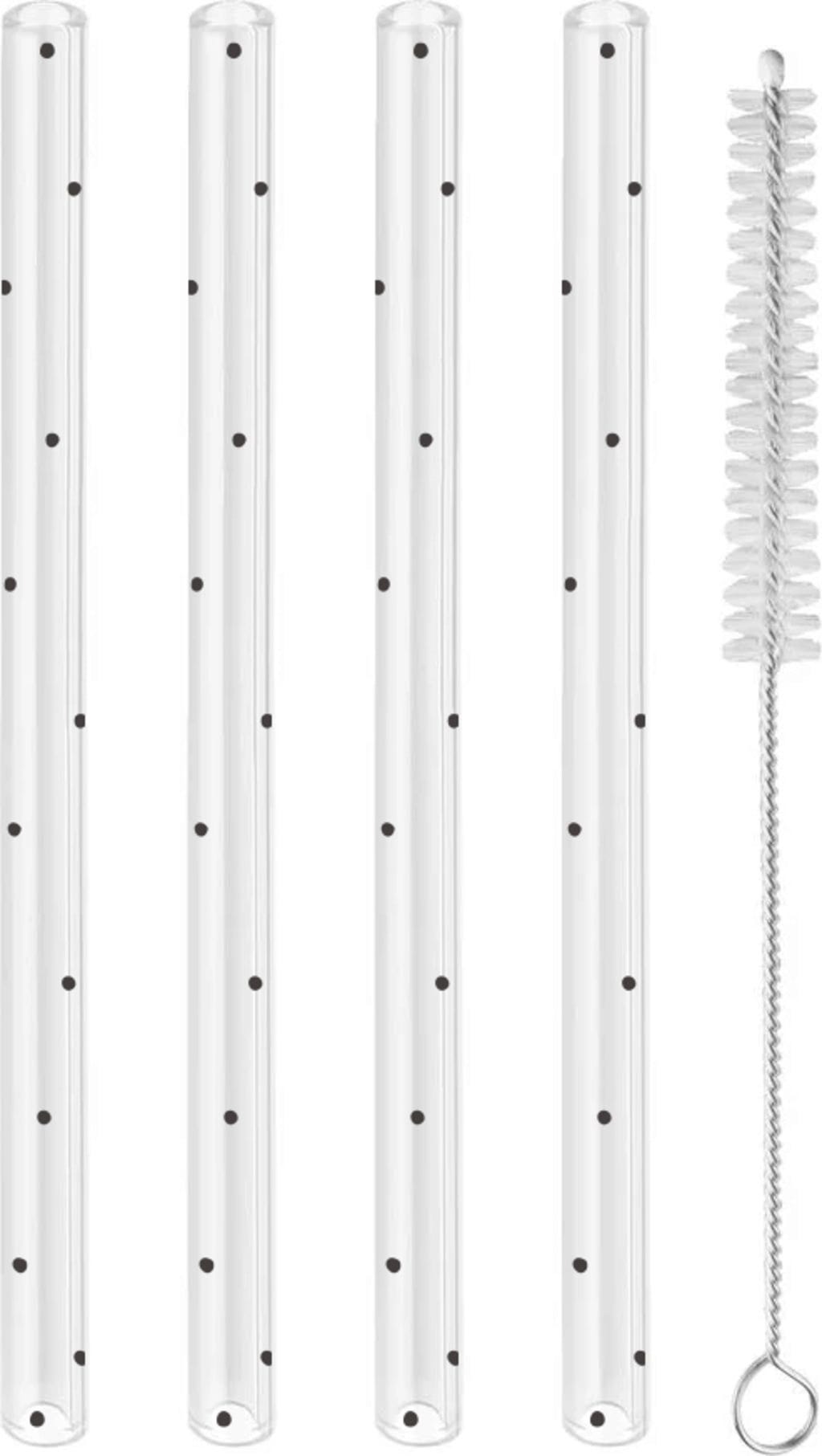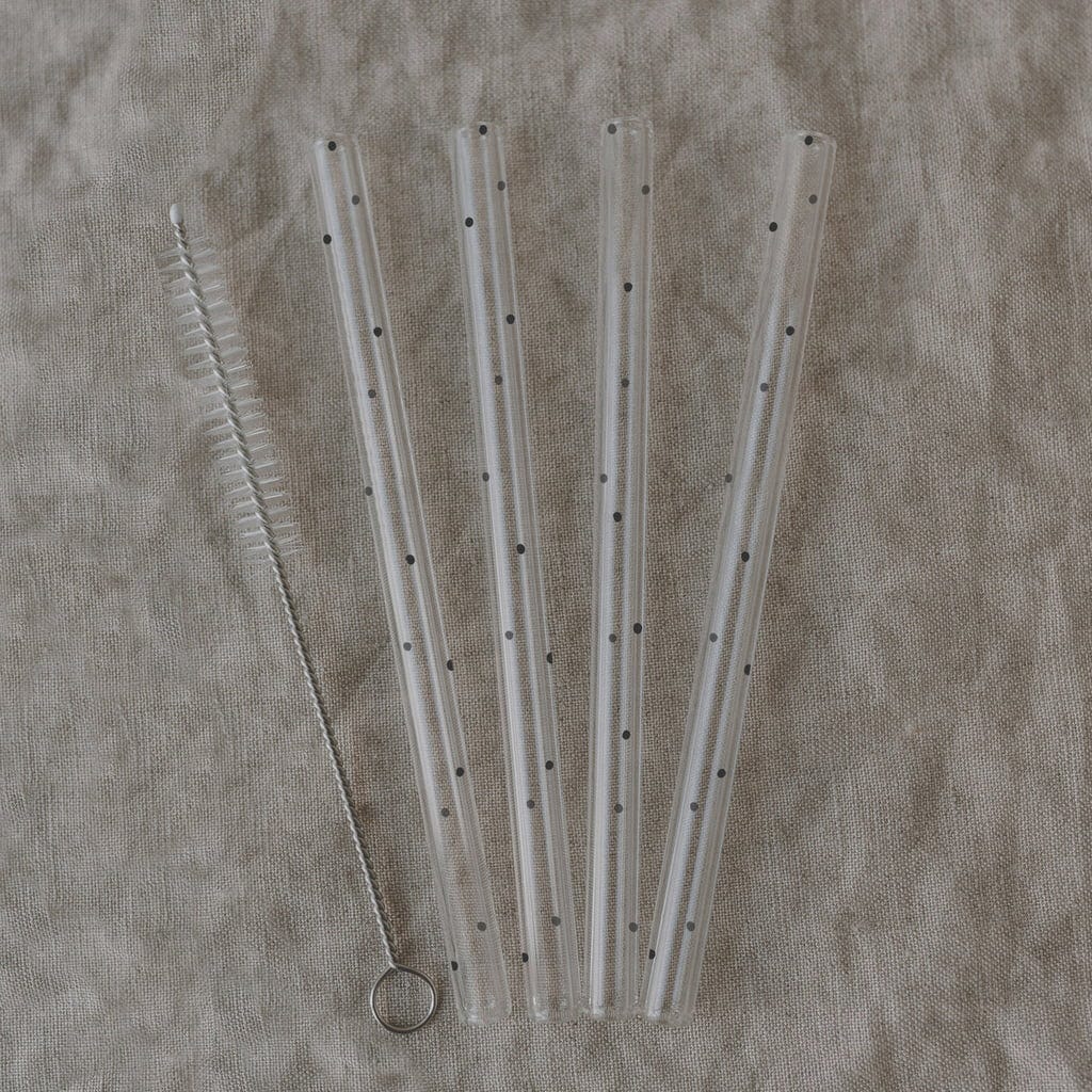 Boroszilikát üvegből készült, hőálló szívószálak elegáns fekete hangsúlyokkal. A szívószálak mosogatógépben vagy a mellékelt kefével tisztíthatók.