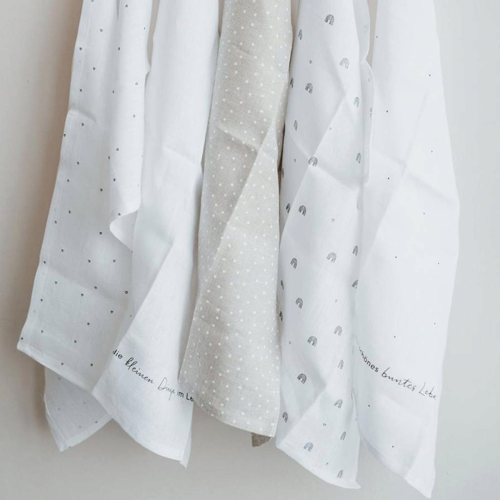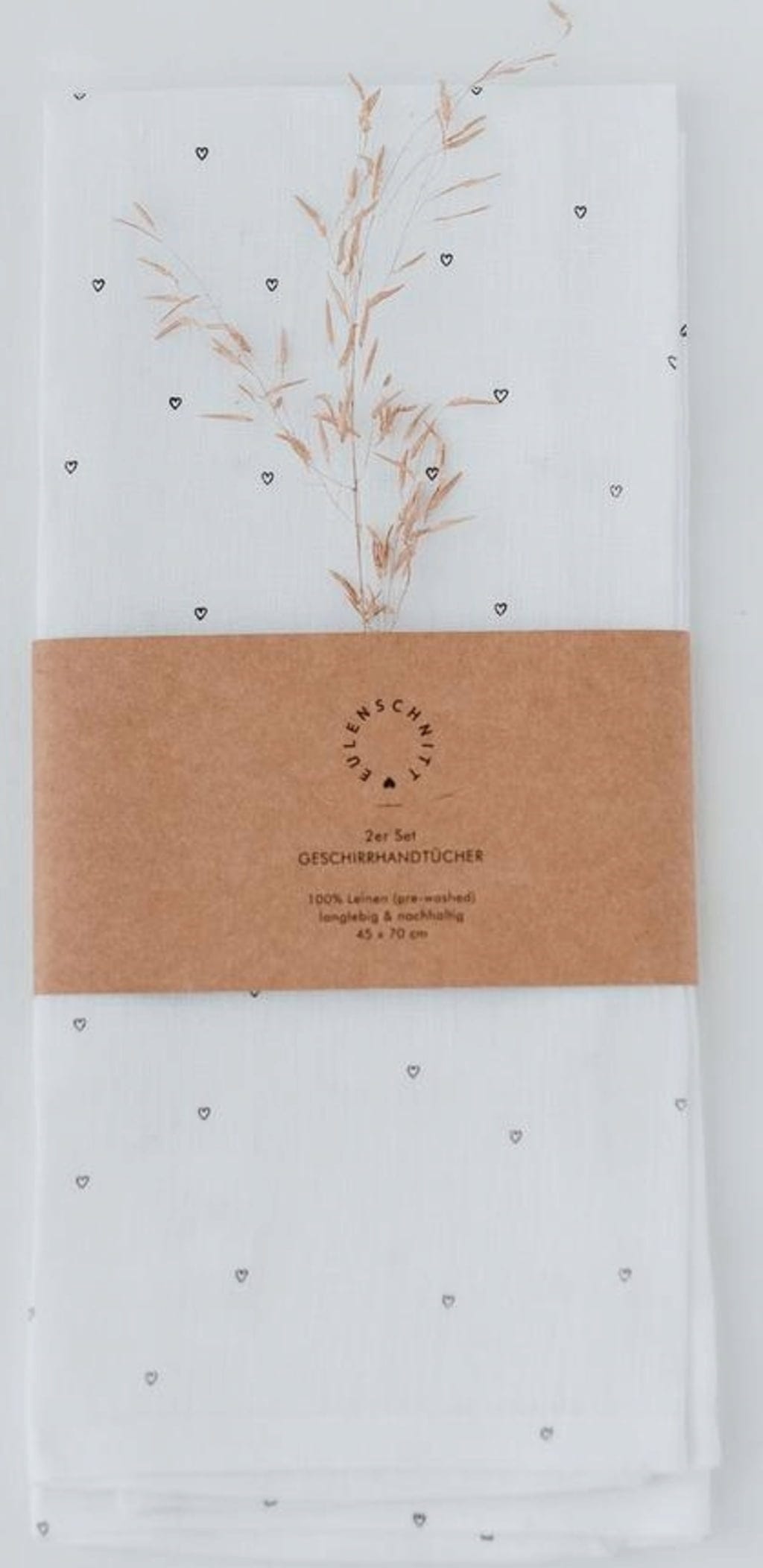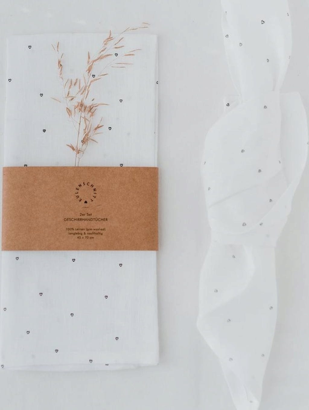A finom lenvászonból készült, gyönyörű konyharuhák nemcsak diszkrét kis szívmintájukkal, hanem praktikus anyagtulajdonságaikkal is lenyűgöznek. Mivel a vászon kiváló minőségű természetes szálként nem bolyhosodik, ideális a poharak és finom evőeszközök szárítására és polírozására.