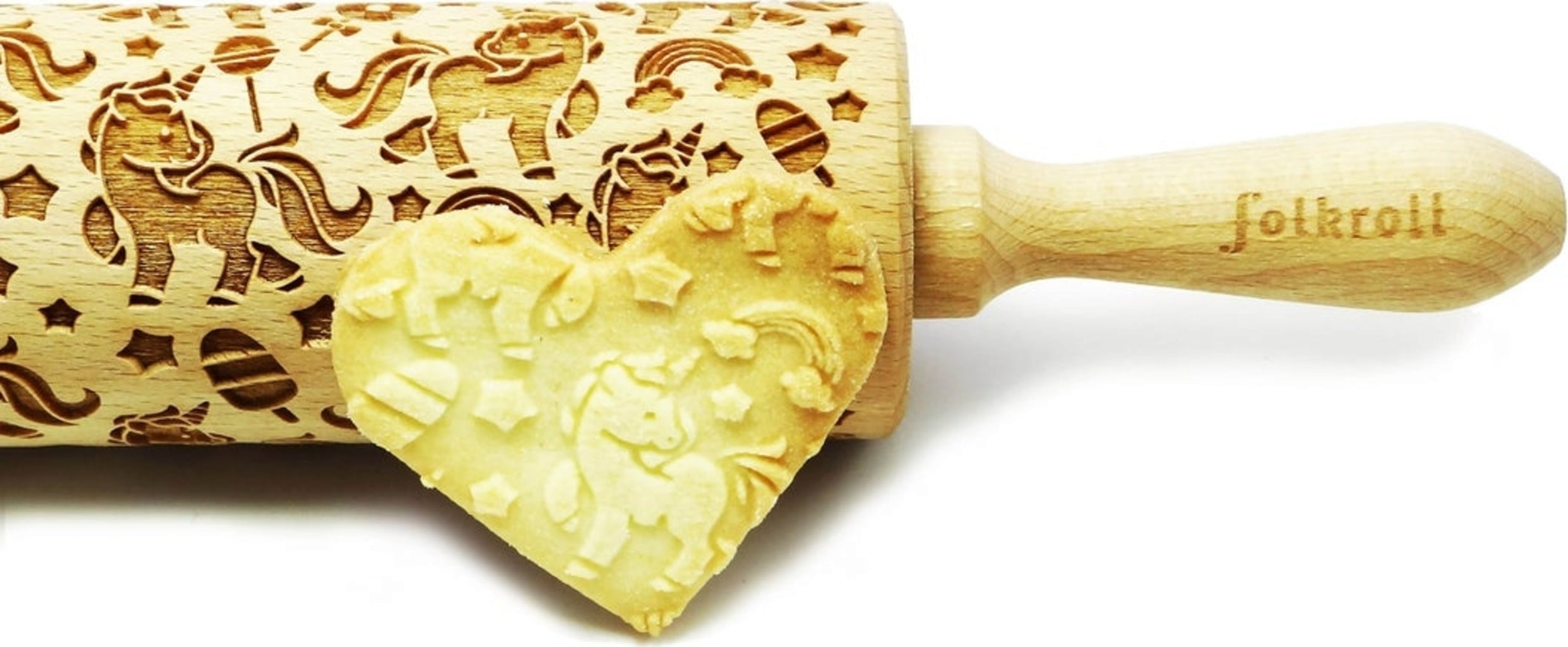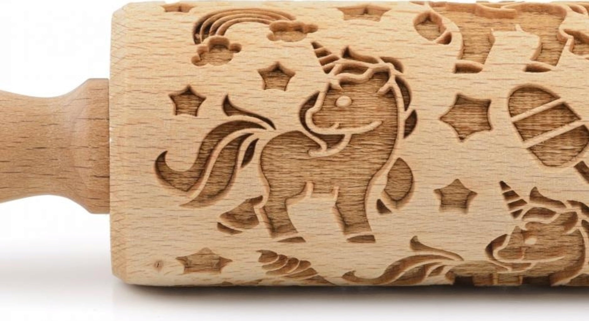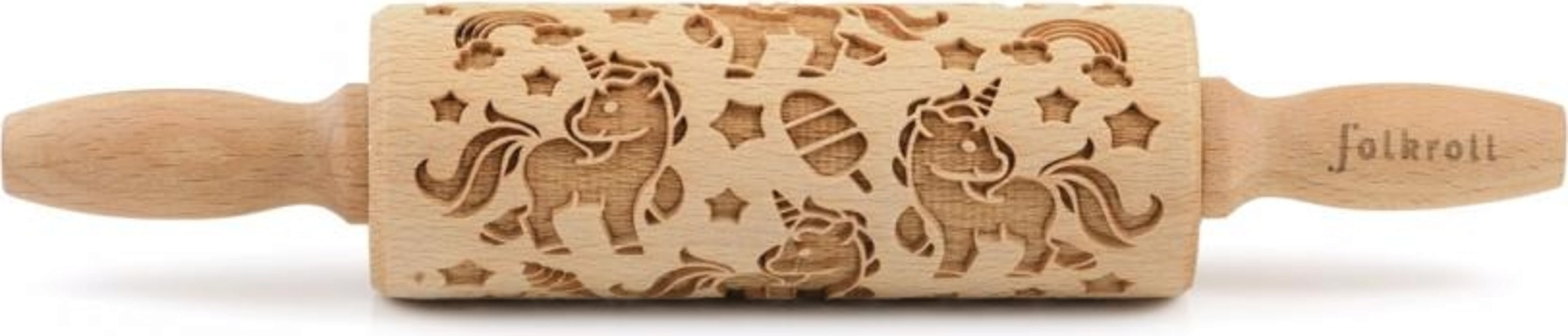 Unikornis rajongók és hercegnők figyelem! Az igényesen gravírozott, kiváló minőségű bükkfából készült sodrófa segítségével a kicsi és nagy pékek pillanatok alatt imádnivaló unikornis kekszeket varázsolhatnak. A dekoratívan díszített sütemények elkészítése még sohasem volt ilyen egyszerű: a kinyújtott tésztán görgesse át, majd kiszúróval vagy szaggatóval vágja vagy szaggassa ki, süsse meg, és kész is!