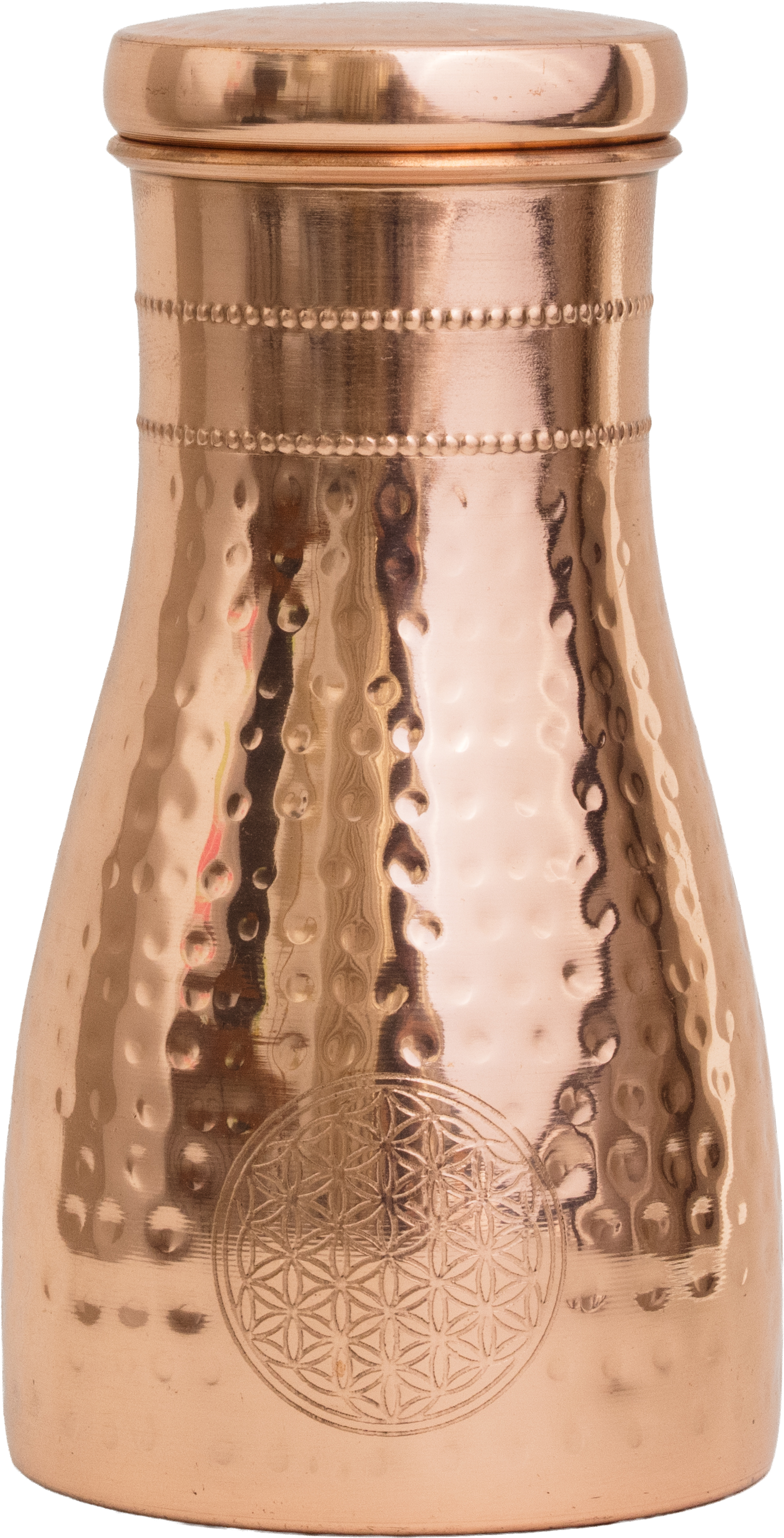 Az "Élet virága" motívummal ellátott, kalapált rézkancsót úgy tervezték, hogy minden pohár víz tudatos, figyelmes cselekvéssé váljon. A laza fedél praktikus a víz gyors és egyszerű kitöltéséhez. Mindez tökéletessé teszi az ájurvédikus életmódhoz.