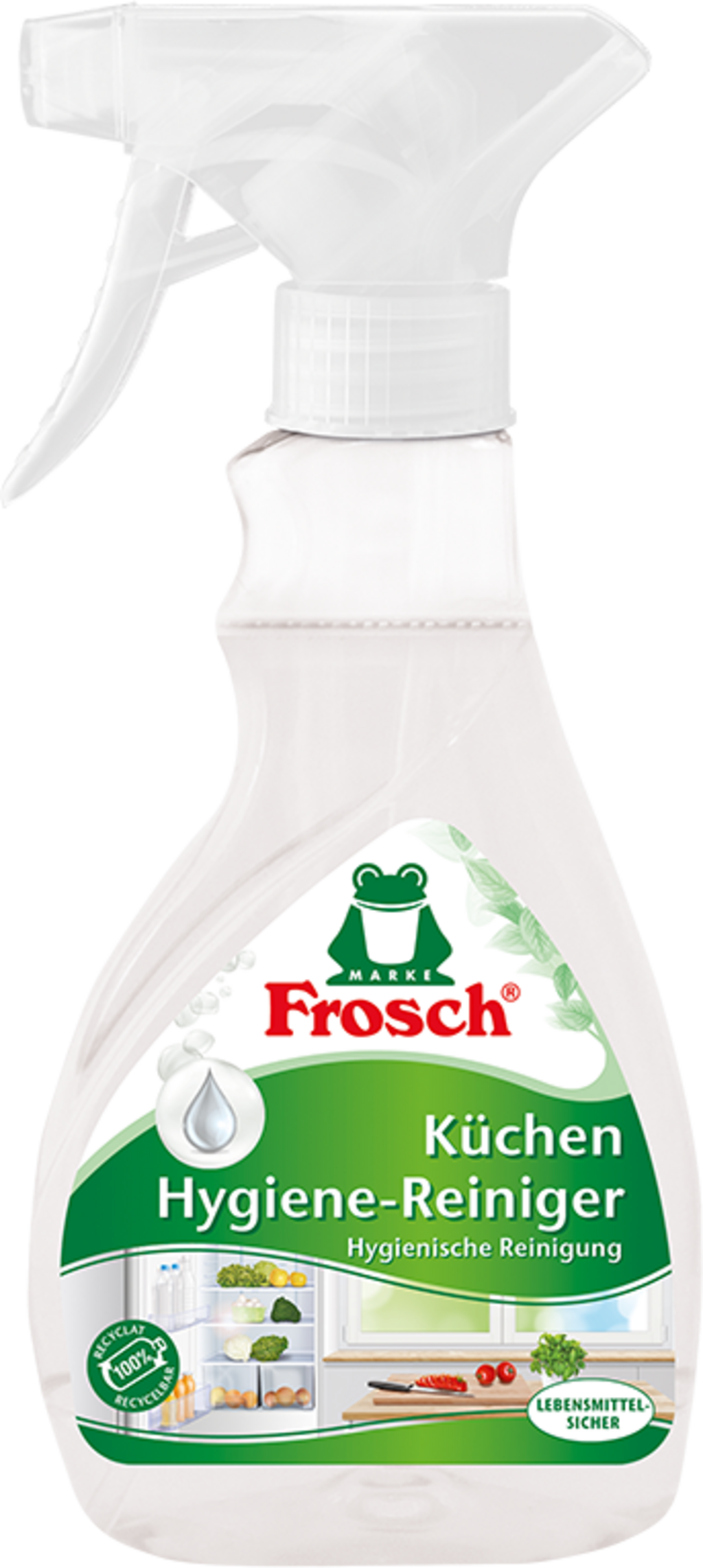 A Frosch konyhai higiéniai tisztítószer alkalmas a konyha különféle letörölhető felületeinek alapos tisztítására! A mikrohullámú sütők, hűtőszekrények és munkafelületek megszabadulnak a szennyeződésektől, az ételmaradékoktól és a kellemetlen szagoktól.