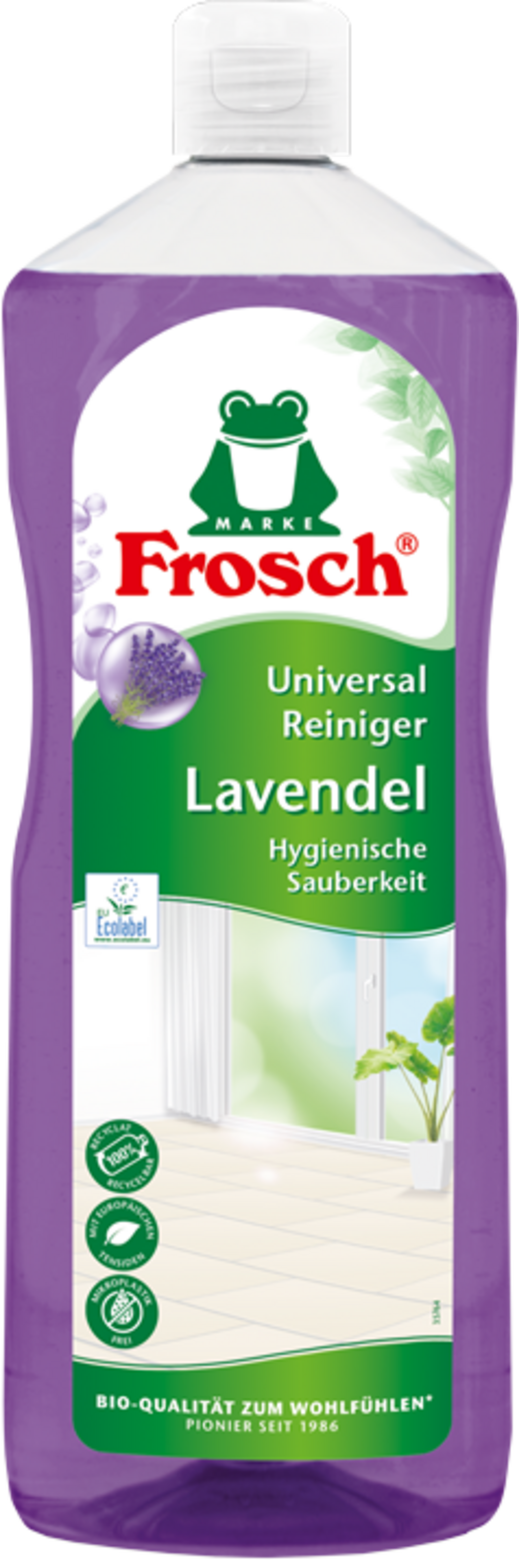 Ez a Frosch általános tisztító higiénikus tisztaságot biztosít, szinte minden felületen alkalmazható. A levendula fertőtlenítő tulajdonsága által hatékony a zsírral és szennyeződésekkel szemben.