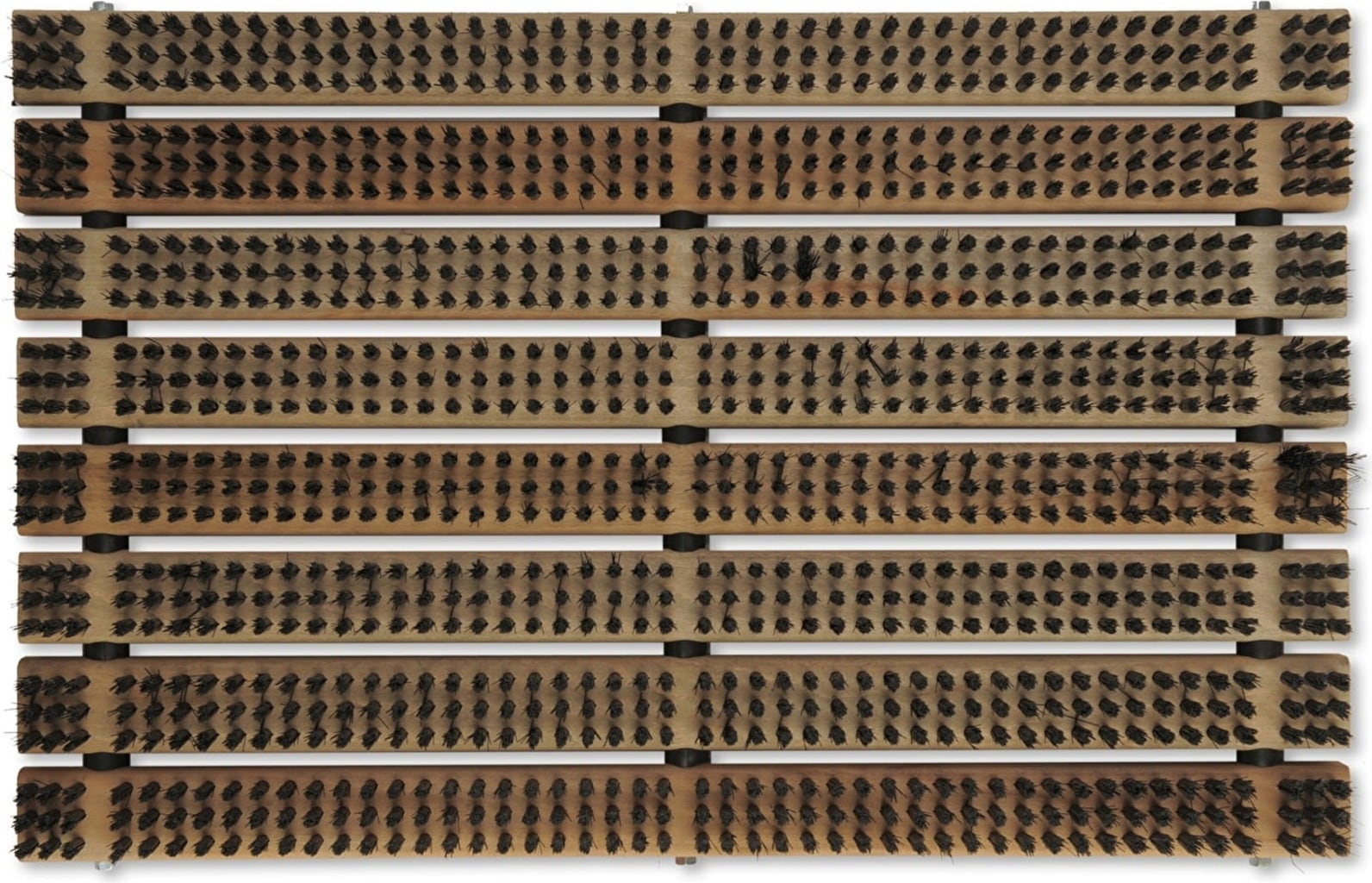Ez a Lábtörlő különösen kemény és hosszú sörtéi által ideális a cipőn vagy a csizmán található nagy szennyeződések eltávolításához. A farács által sokkal stabilabb, mint a hagyományos lábtörlők és sokkal jobb tapadást is biztosít. A világos és a sötét fa kontrasztja által otthonunk stílusos kiegészítője lehet.