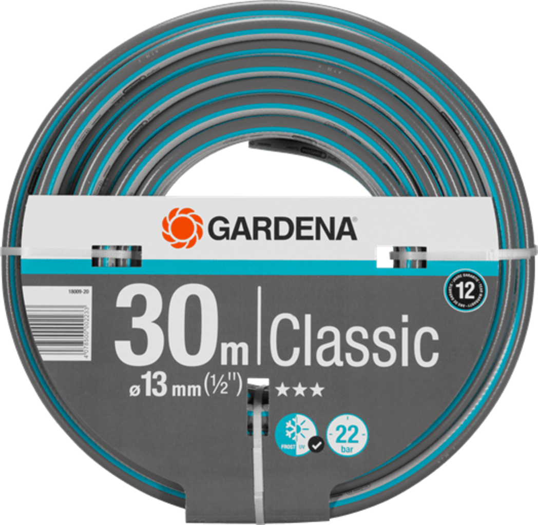 A GARDENA Classic tömlő kiváló minőségű, UV-álló szövetből áll. A nyomásálló és alaktartó anyag akár 22 bar nyomást is elbír. A tömlő nem tartalmaz mérgező lágyítószereket (ftalátokat) vagy nehézfémeket.