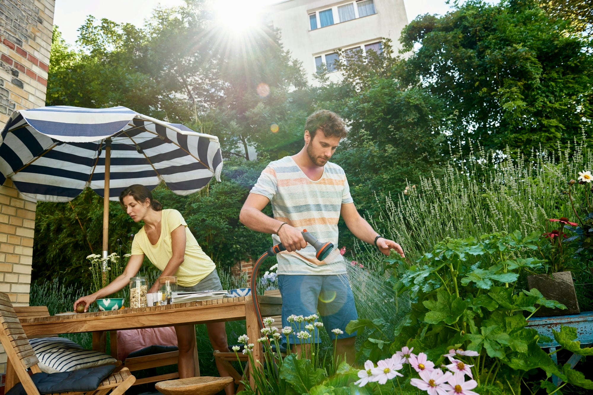 Ez az öntözőfej tökéletes virágágyások és nagyobb területek öntözésére a különösen könnyen fogható, puha műanyag elemekkel ellátott ergonomikus fogantyúnak köszönhetően. Miután az öntözősugár az ágyás méretéhez igazítható, optimális vízmennyiséget biztosíthat növényeinek.