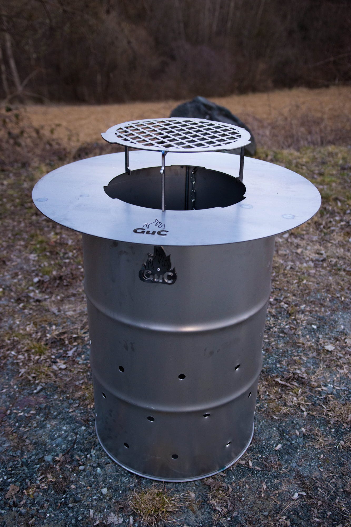 GuC Grillhordó XL, 80 cm-es szett: hordó, 80 cm-es plancha grill lap, 80 cm-es plancha grill lap tartozék, öntöttvas lábas betét