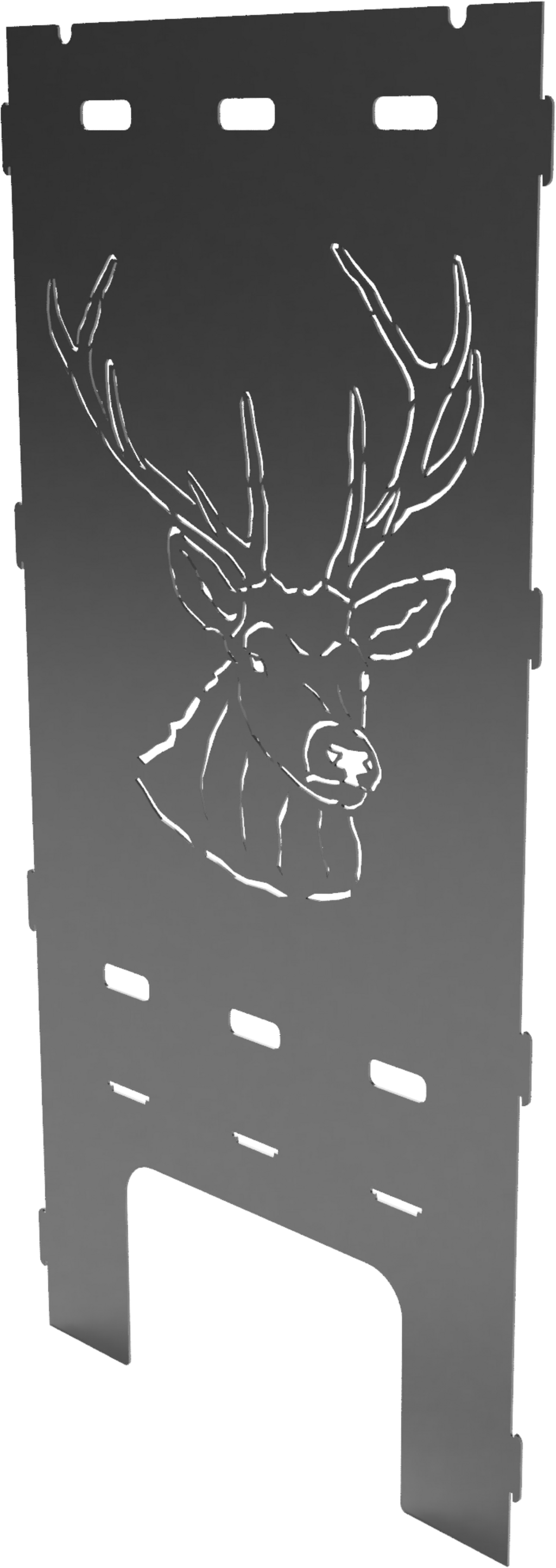Ez az acél oldallap elegáns, természetes szarvas-dizájnjával nyűgöz le, amely garantáltan magára vonja mindenki figyelmét, és megadja az utolsó simítást a tűzrakó kosárnak. Praktikus bevágásokkal is rendelkezik, amelyek a grillnyársak tartójaként használhatók. A tűzrakó kosár pillanatok alatt összeszerelhető, és hangulatos tűzfénybe borítja kertjét, erkélyét vagy teraszát - ideális a szeretteivel töltött, meghitt estékhez.