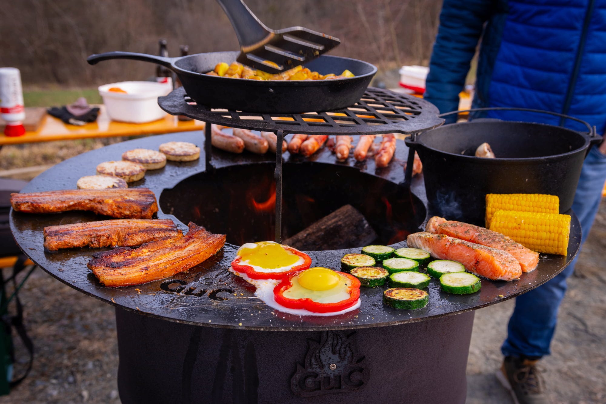 A tökéletes nyári naphoz természetesen hozzátartozik egy nagy grillezés a kertben. Használja ezt a grill lapot tűzrakójához vagy grillhordójához. A 4 mm vastag acélból készült, nagyméretű gyűrű egyenletesen melegszik fel, és elegendő helyet kínál a különösen éhes társaságok gyors ellátásához is. A mérettöbbletnek köszönhetően különböző grillezési zónák állnak rendelkezésre a közvetlen vagy közvetett grillezéshez. Emellett egy külön beszerelhető tartozék is van hozzá, hogy közvetlenül a tűz fölött használhasson serpenyőt, wokot stb.