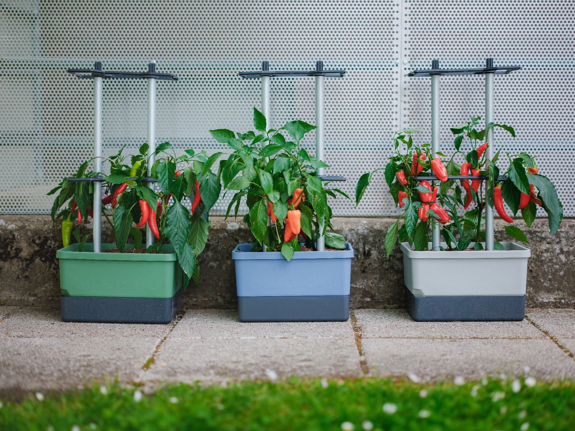 A kiváló minőségű alumíniumból készült karórendszer biztosítja a növények szükséges támasztékát, az integrált víztartály és az öntözőszalagok pedig a növények automatikusan elegendő vízellátásáért felelnek. A termesztő ládán kívül mindössze 10 liter földre és két chili növényre van szükség, és kezdődhet is az ültetési móka.
