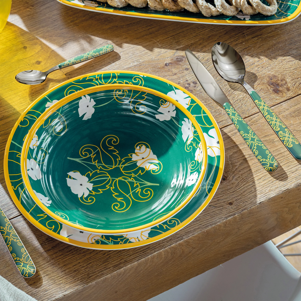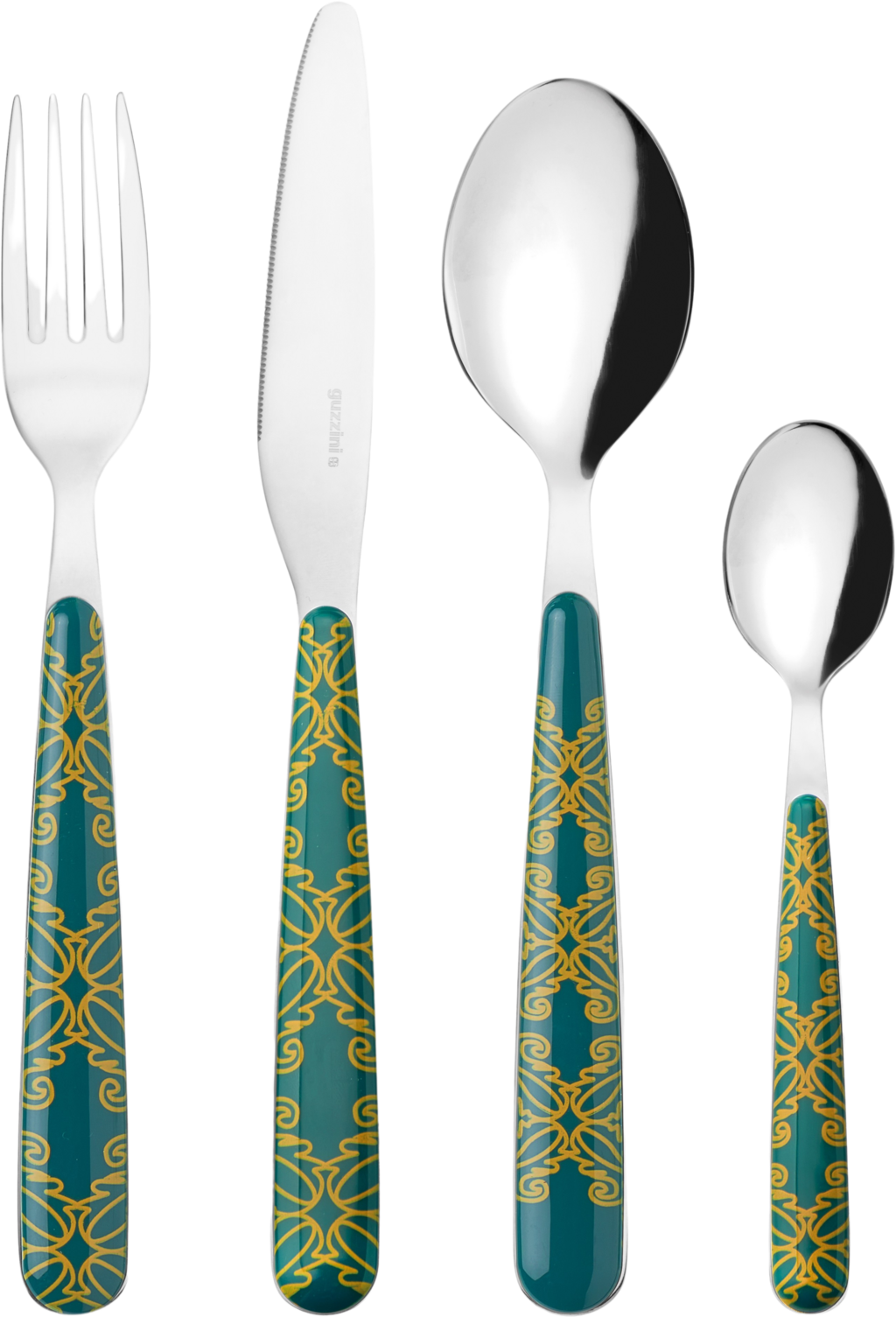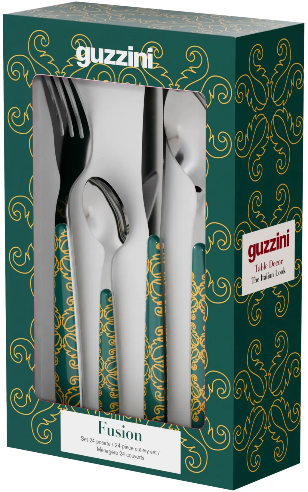 A guzzini 24 darabos "Fusion" evőeszközkészlettel 6 stílusos terítéket készíthet! Elegáns mintázata igazán szemet gyönyörködtetővé teszi bármelyik étkezőasztalon, az ergonomikus műanyag nyél pedig tökéletes fogást biztosít!