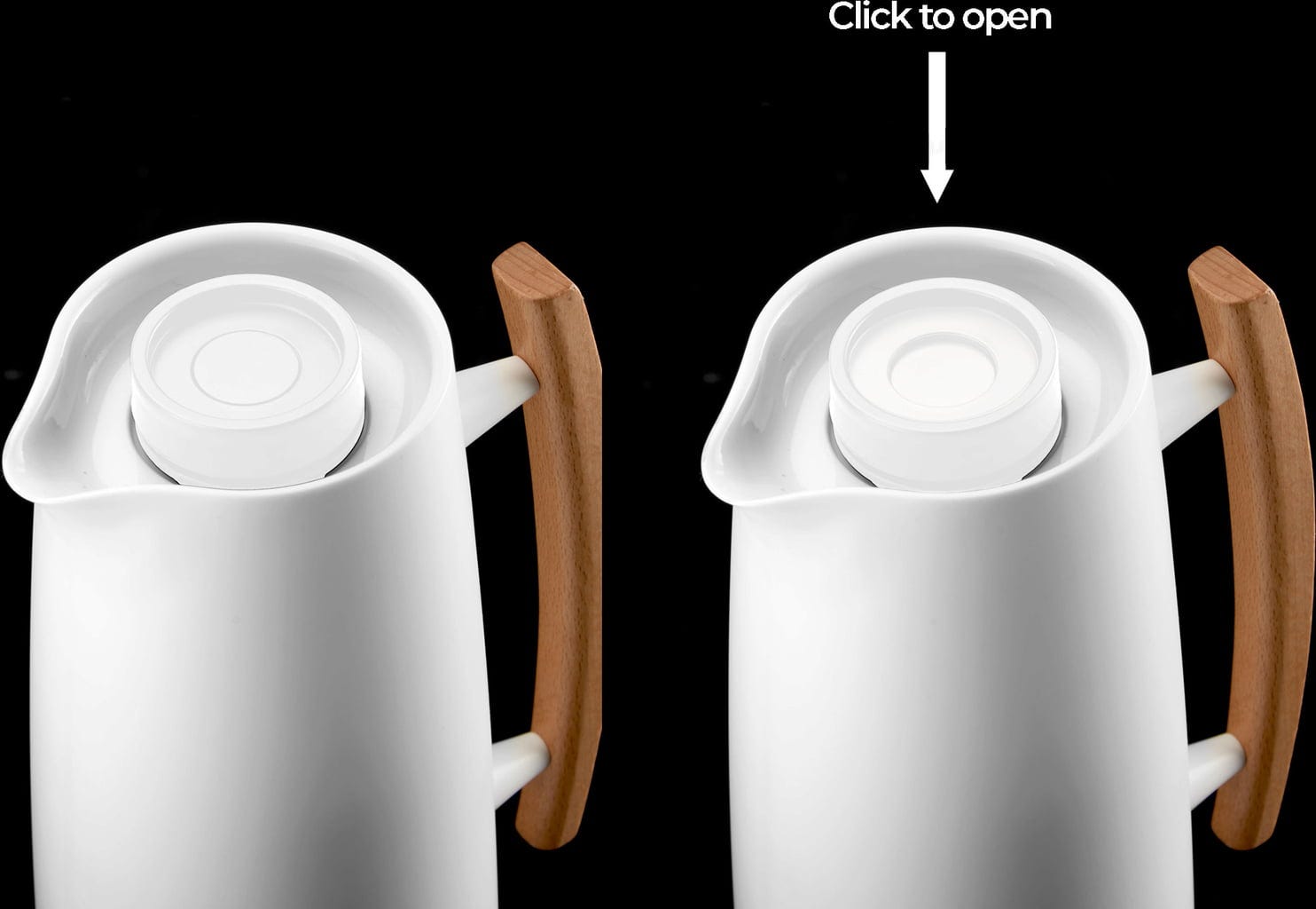 A praktikus, Push-rendszernek köszönhetően a kancsó könnyedén nyílik és biztonságosan záródik. A légmentesen záródó kialakítás biztosítja, hogy semmi ne szivárogjon, és a hőmérséklet optimálisan megmaradjon. A széles nyílásnak köszönhetően a töltés is gyerekjáték. Különlegessége az elegáns fa fogantyú, amely nemcsak jól néz ki, de kényelmes is fogású is. 1 literes űrtartalmával a Riviera 63 ideális társ mindennapi használatra és minden alkalomra.