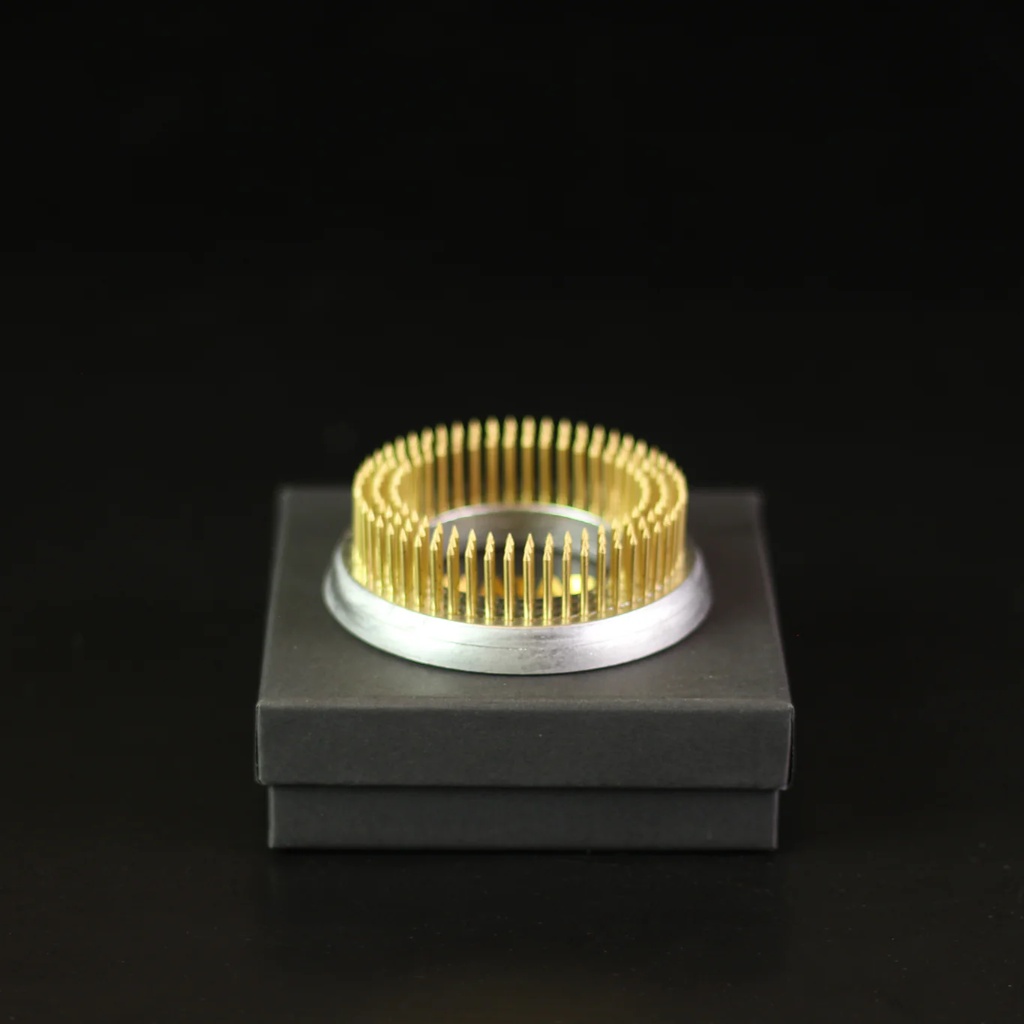 Alkosson stílusos ikebana kompozíciókat a Kenzan gyűrűvel – egy megbízható eszköz a kreatív és stabil virágművészethez. A lekerekített forma és a tartós rézhegyek lehetővé teszik a precíz elhelyezést, inspirálva mind a minimalista, mind a művészi kompozíciókat.
