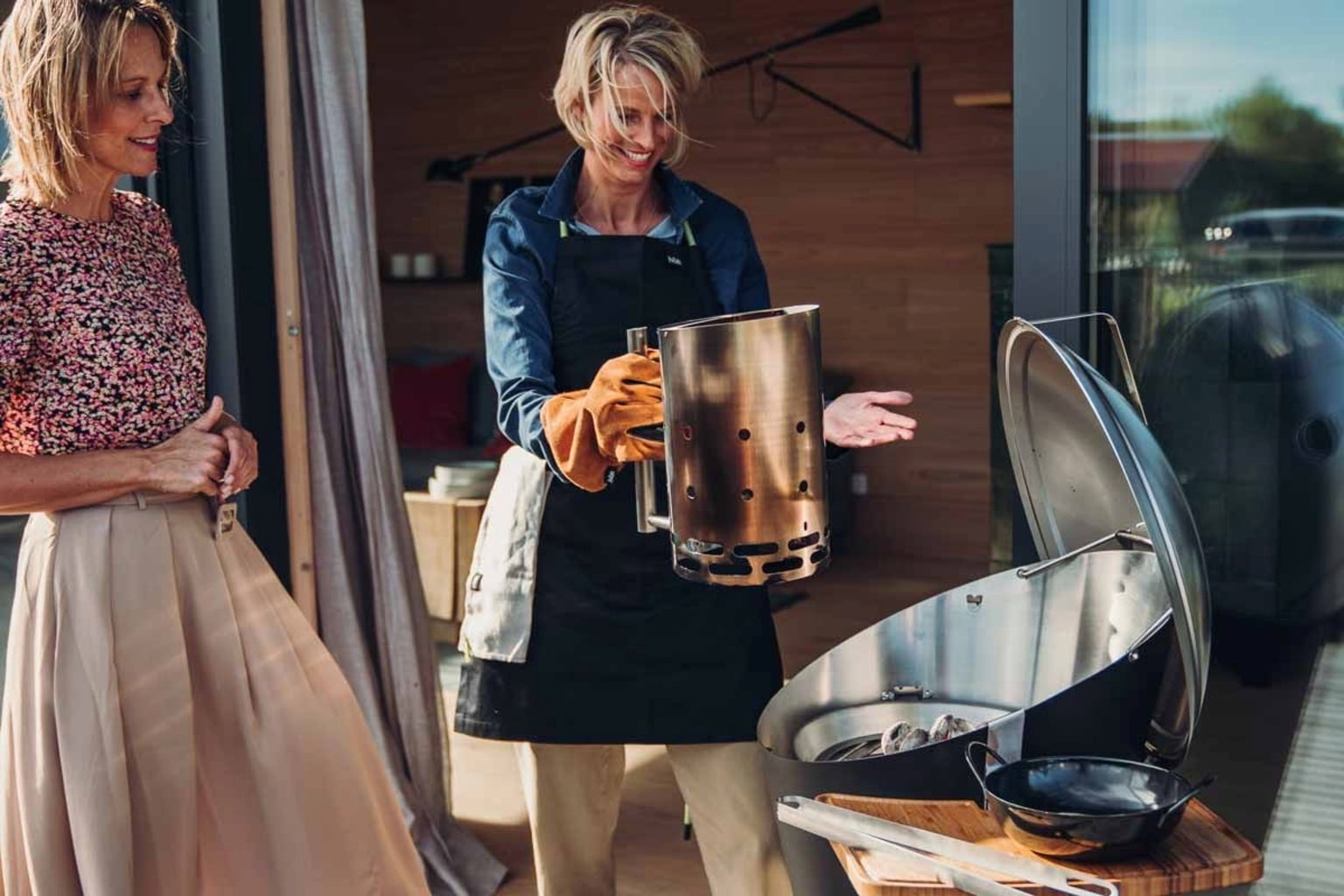A BBQ STARTER klasszikus begyújó kéményként használható - nem kell megfordítani, hanem csak egyszerűen felemelni. Nincsenek szikrák és nem repül a hamu.