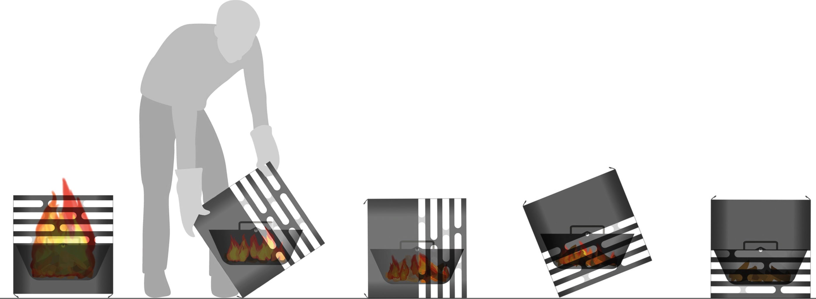 Használja a CUBE terméket dizájner tűzkosárként, és élvezze a nyílt láng atmoszférikus varázsát. A CUBE egyedi kialakításának köszönhetően a CUBE elfordításával biztonságosan elolthatja a tüzet. A gravitáció biztosítja, hogy a tűzkosár mindig vízszintes maradjon, és a tűz biztonságosan kialudjon.