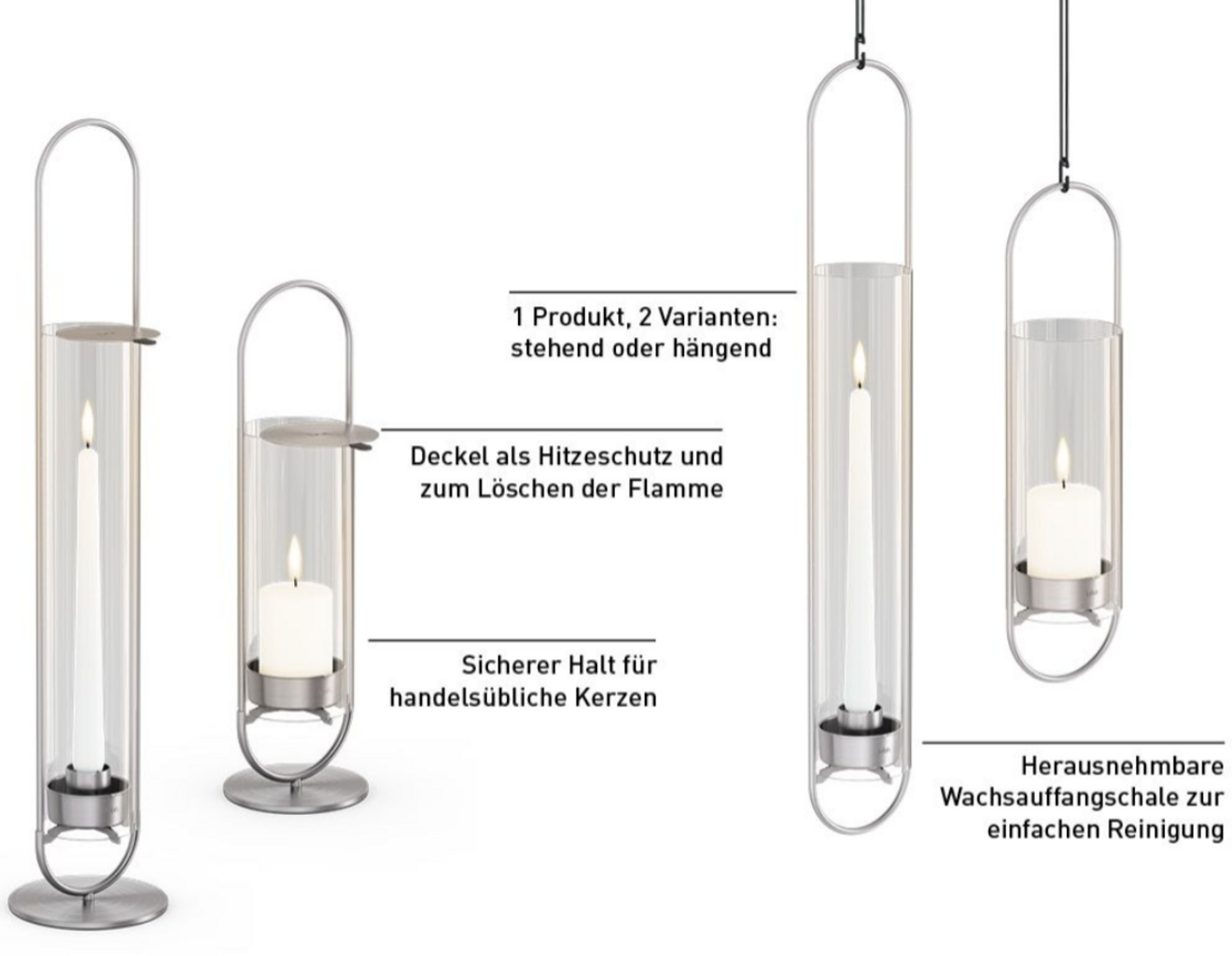 - Alkalmas szabványos gyertyákhoz (Ø 5 cm, max. magasság: 10 cm)