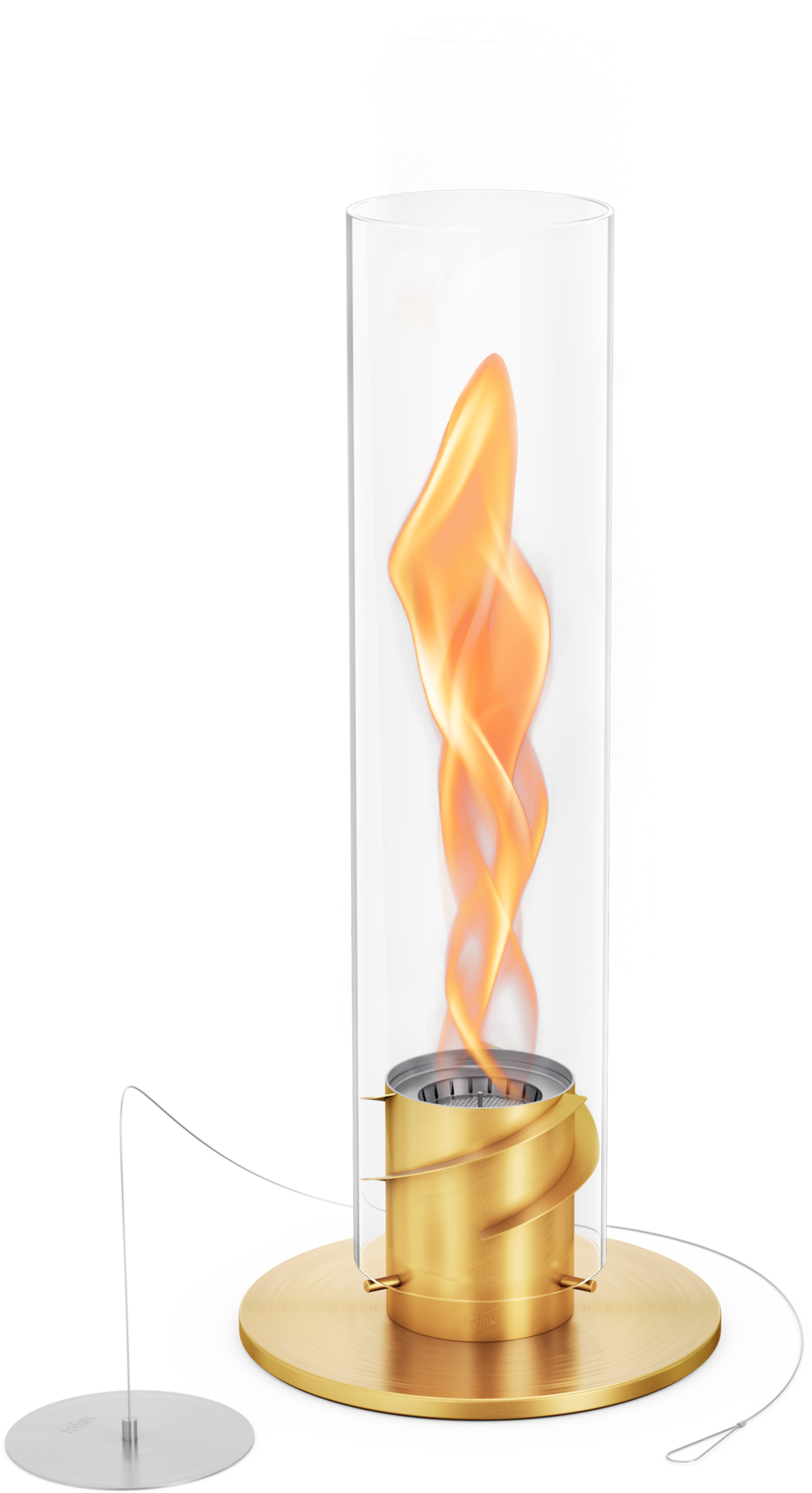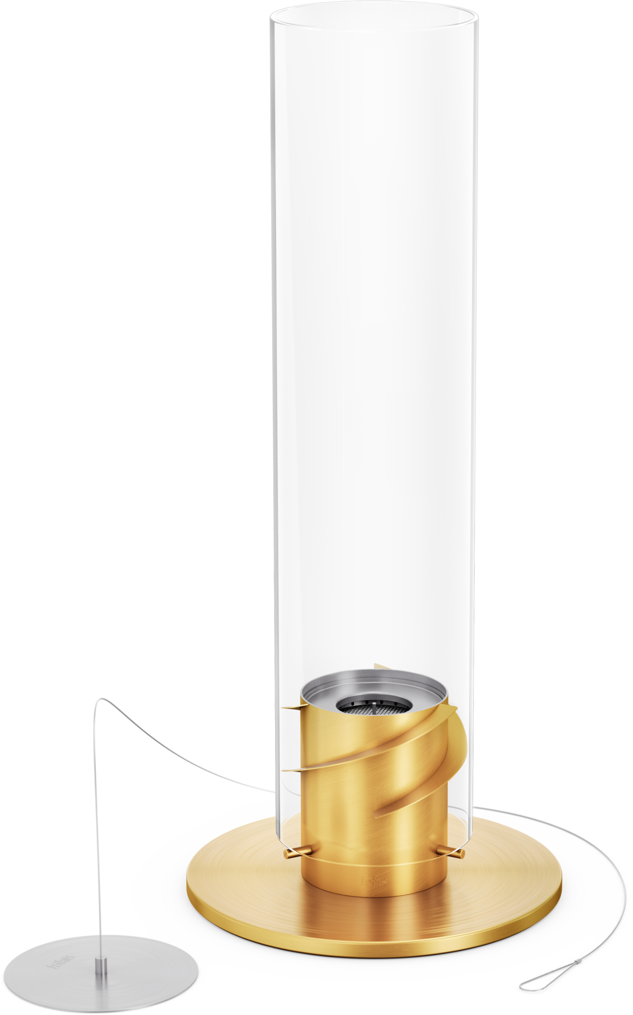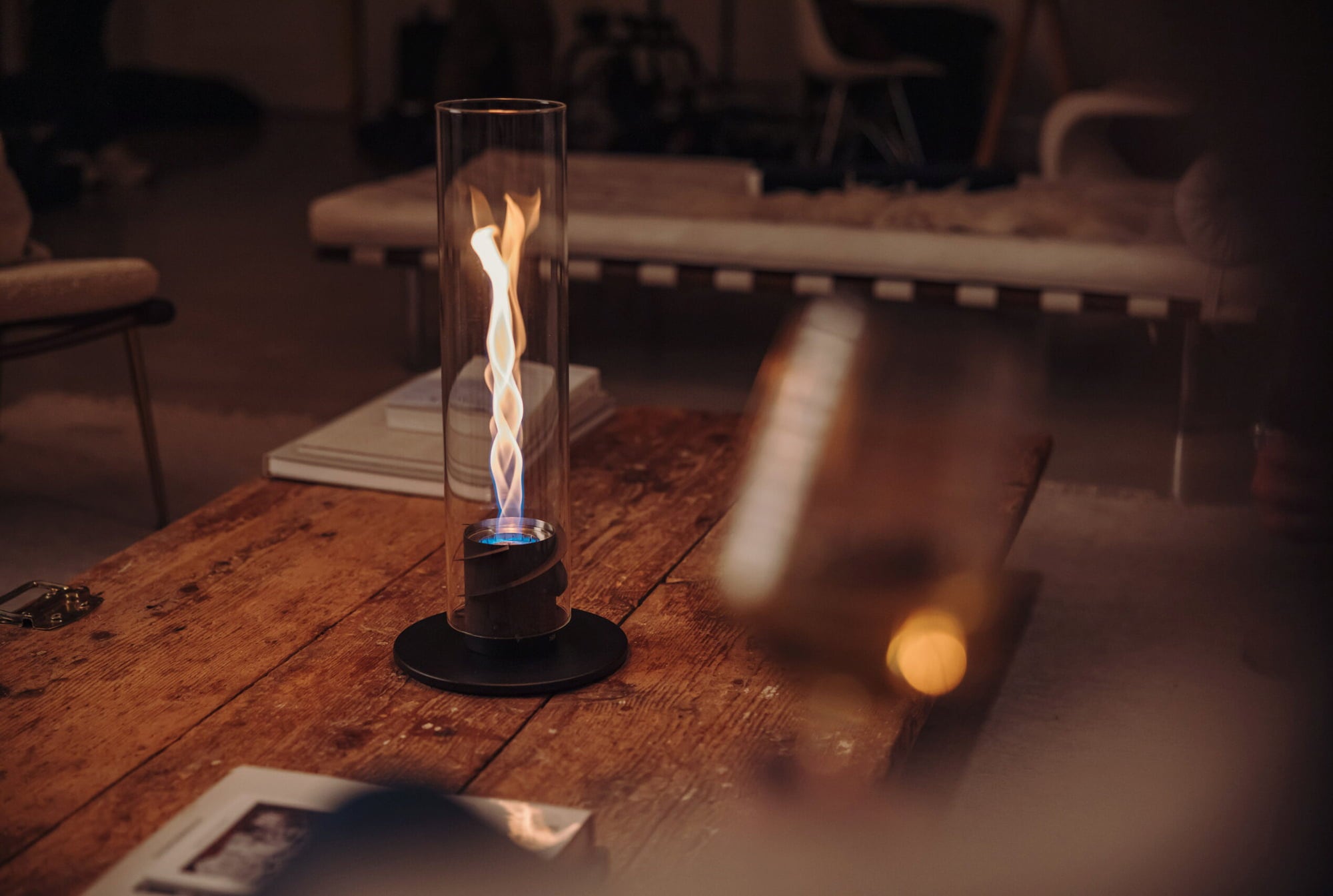 Amint meggyújtotta a gélt és a helyére tette az üveghengert, a beáramló levegő három szárnyon jut keresztül. Ez egy egyedülálló hőhatást hoz létre, amely az üveg kéményhatásával kombinálva biztonságosan zárt lángörvényt eredményez. A láng több mint 500%-kal magasabbra növekszik, illetve további energiafogyasztás nélkül tölti ki a teljes üveghengert.