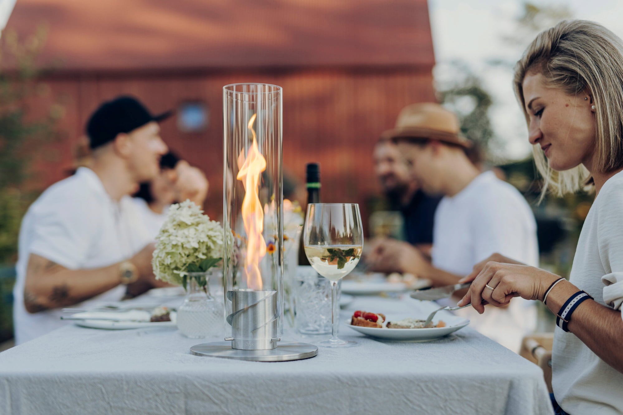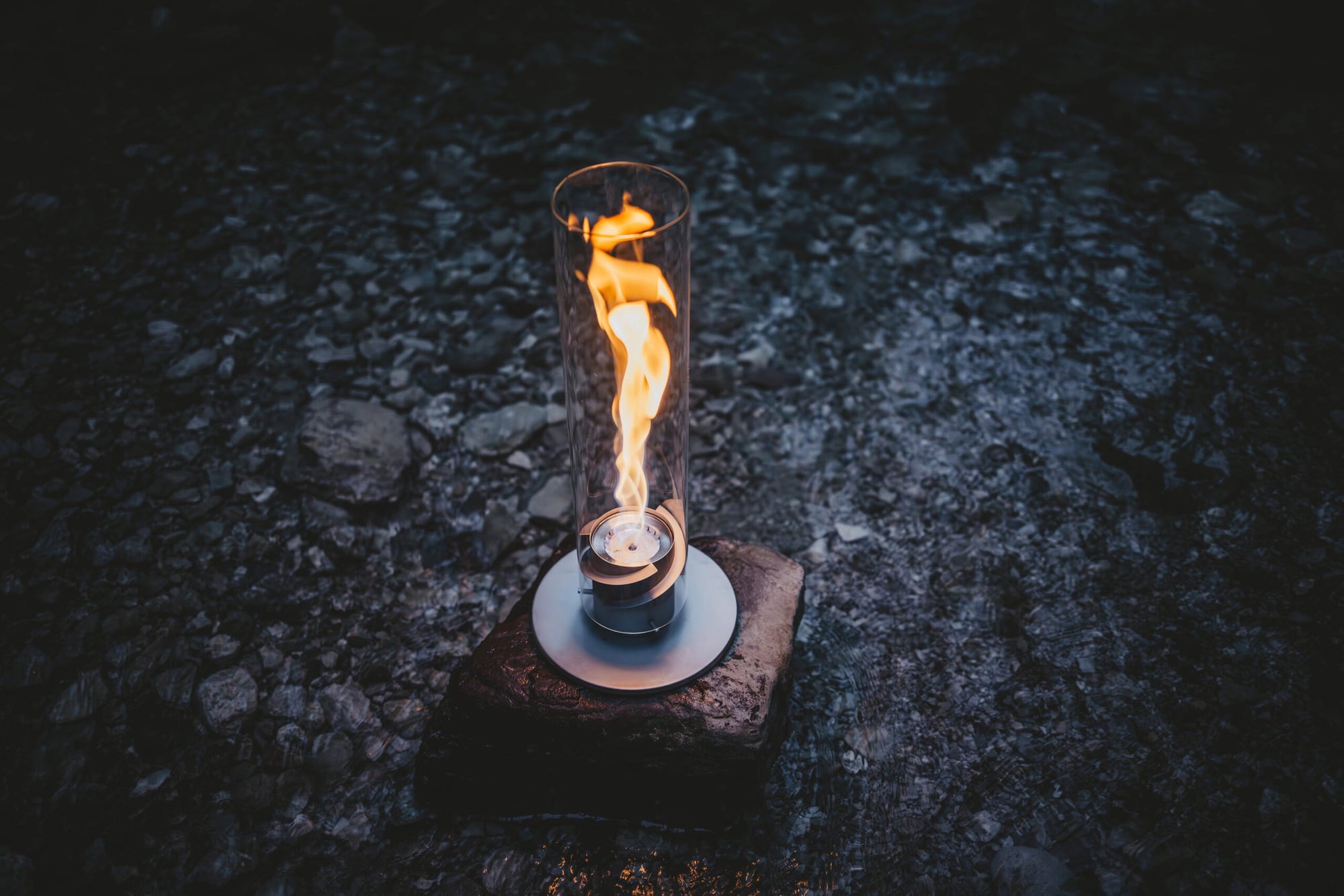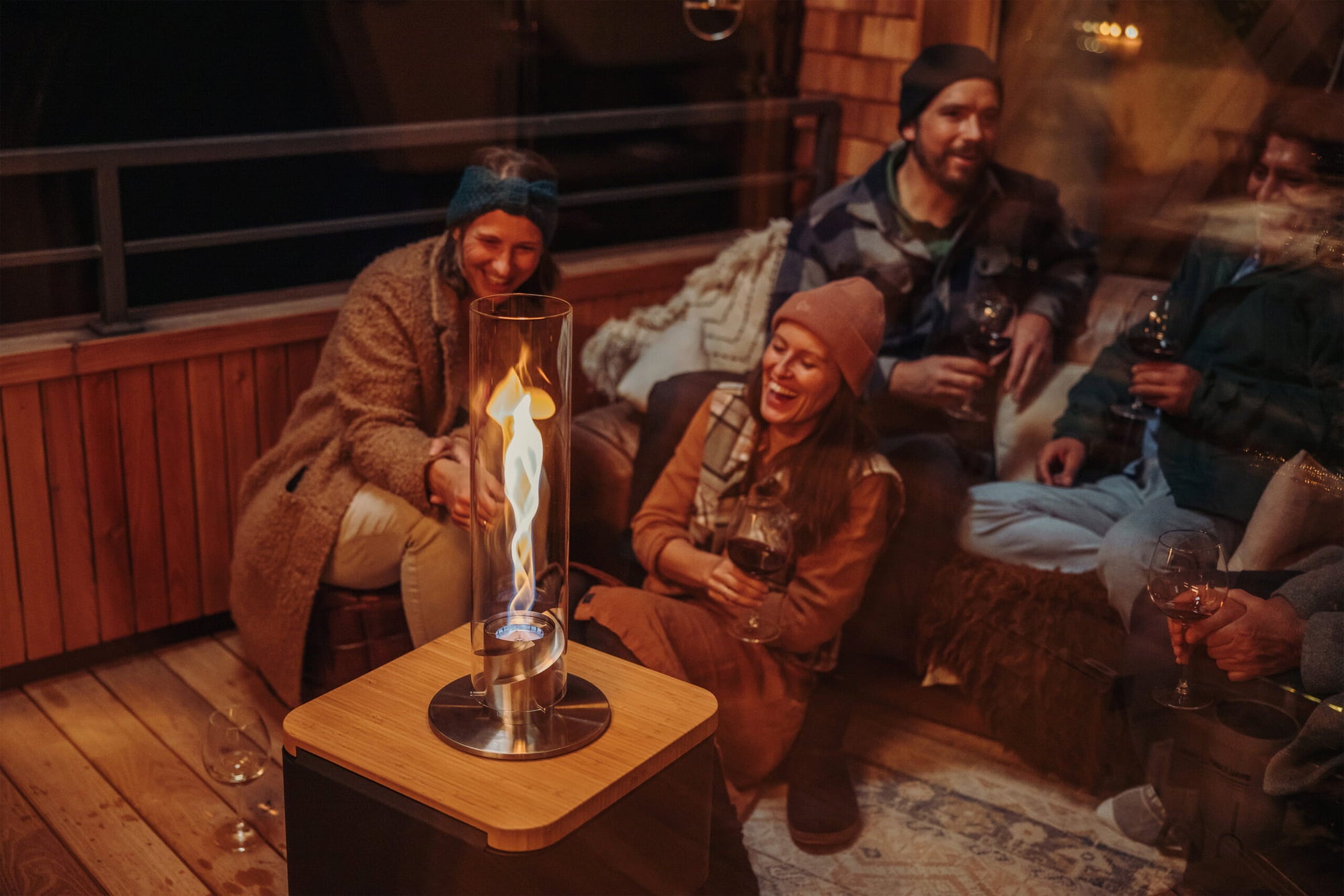 Amint meggyújtotta a gélt és a helyére tette az üveghengert, a beáramló levegő három szárnyon jut keresztül. Ez egy egyedülálló hőhatást hoz létre, amely az üveg kéményhatásával kombinálva biztonságosan zárt lángörvényt eredményez. A láng több mint 500%-kal magasabbra növekszik, illetve további energiafogyasztás nélkül tölti ki a teljes üveghengert.