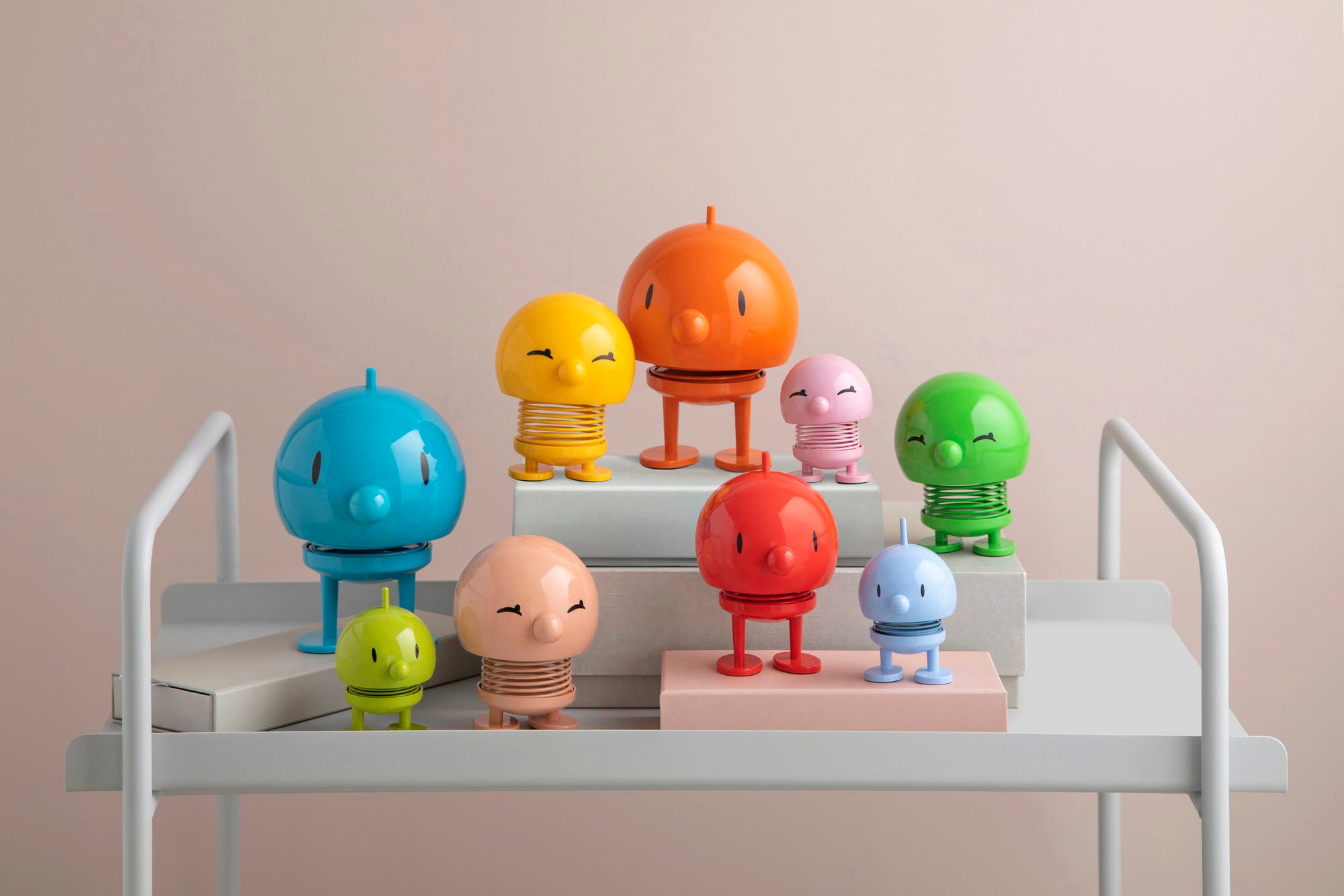 Minden Hoptimist örömöt és pozitív energiát áraszt. A harmonikusan kerek testű, aranyos hangulatjavítók számos különböző designban elérhetőek. Ha meglökünk egy Hoptimist-et, a beépített acélrugónak köszönhetően a feje vidáman kezd billegni. Különböző alkalmakra szánt ajándékként ezek a kis figurák nagyszerű hangulatot teremtenek.