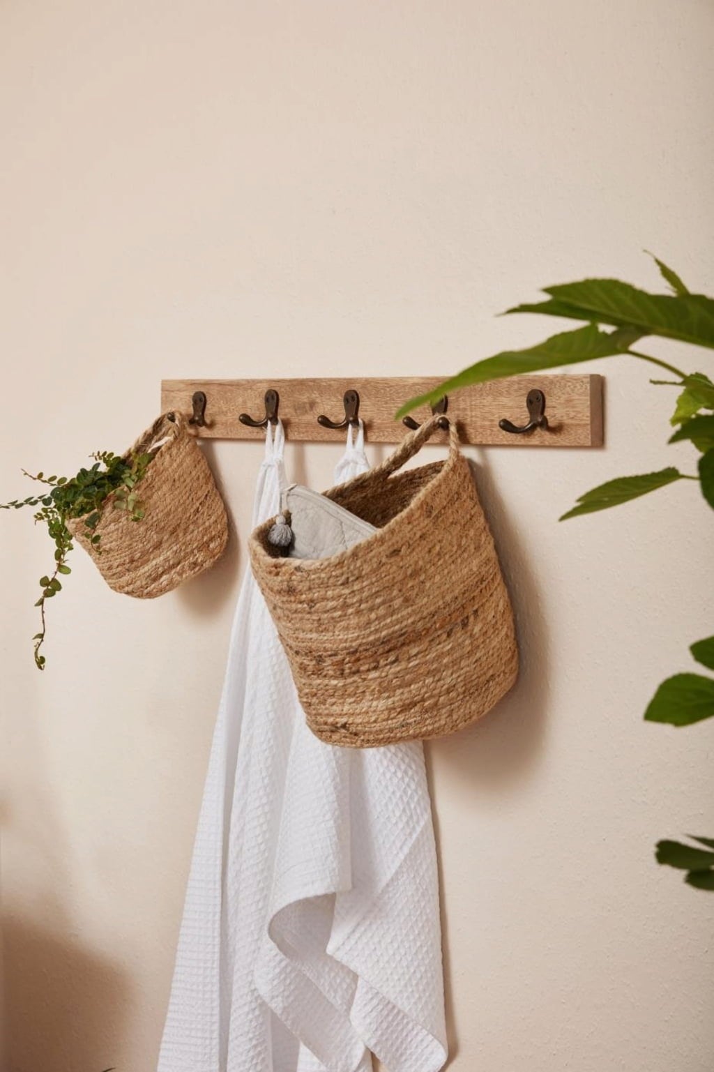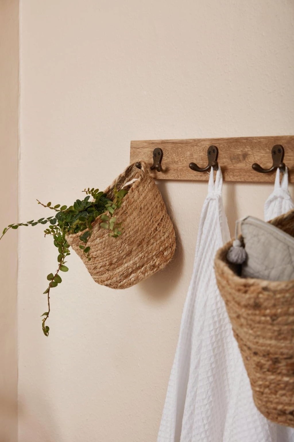 A fogantyúval ellátott juta kosár ideális megoldást nyújt az otthon stílusos rendszerezéséhez és a rend megteremtéséhez. A fogantyú segítségével könnyen hordozható és áthelyezhető a kosár, de egyszerűen és dekoratívan fel is akasztható egy kampóra. Igazi szemet gyönyörködtető látványt nyújt a konyhában, fürdőszobában, előszobában és a nappaliban egyaránt.