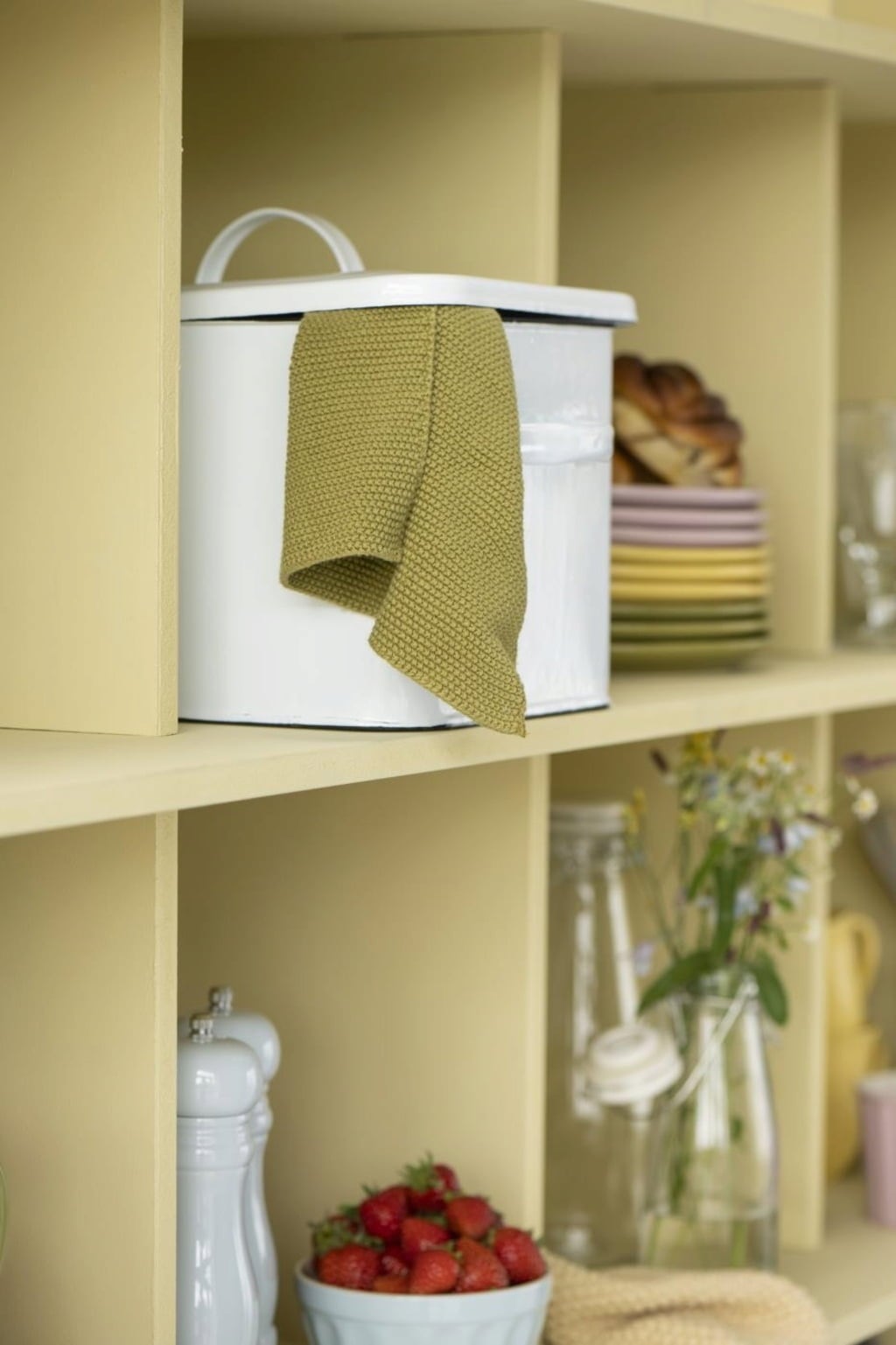 A zománcból készült kenyértartó doboz frissen tartja a kenyeret és a pékárut, emellett nagyszerű megjelenésével a tálaló díszítő elemeként is bemutatható. A robusztus anyag rusztikus bájt kölcsönöz az ebédlőnek, és a konyhának. A zománc különösen egyszerű,en kezelhető és könnyen tisztítható. Nem szívja fel és nem bocsátja ki a szagokat, így ideális élelmiszerek tárolására.