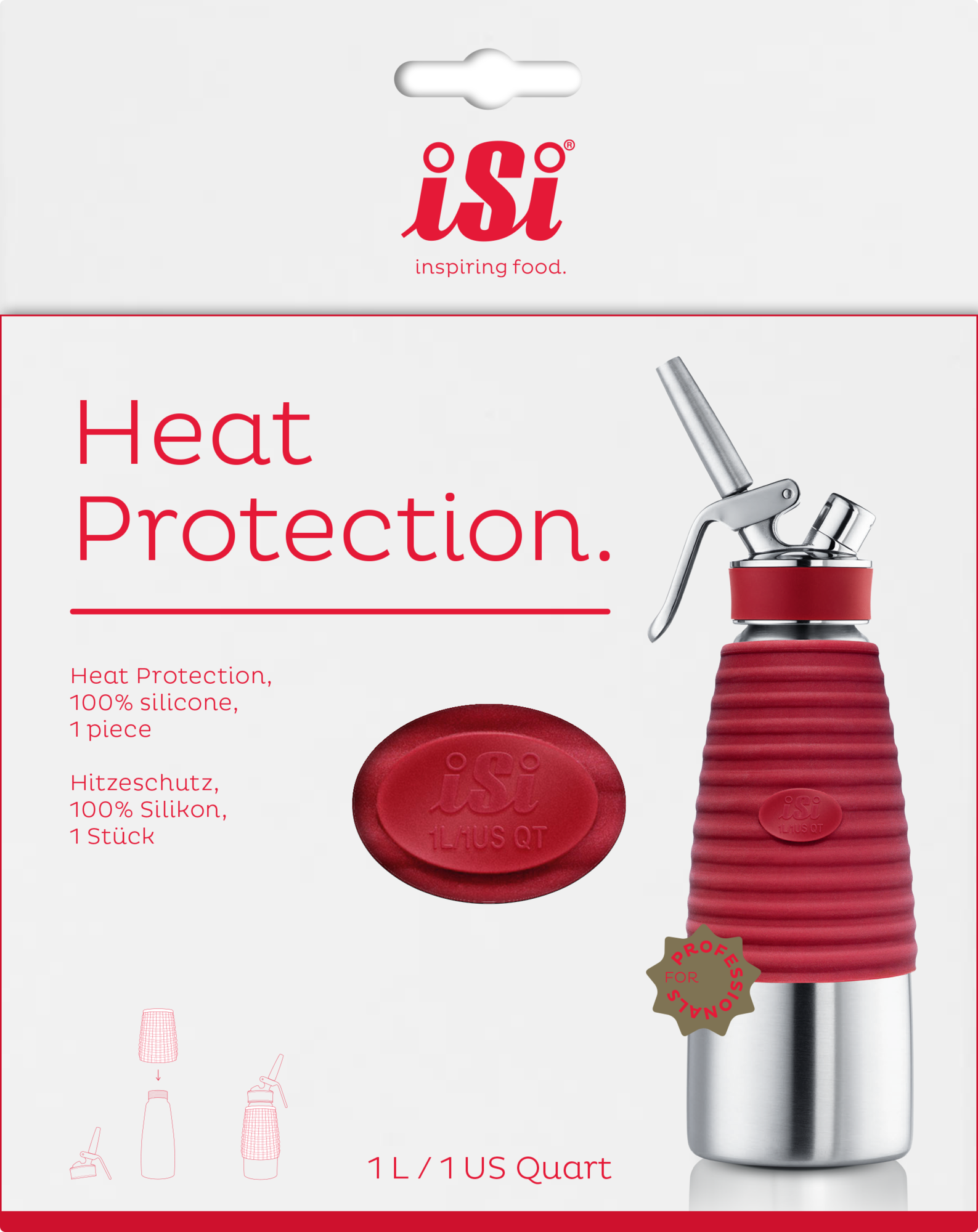 A szilikonból készült borítás védi a kezét, amikor forró felhasználás során megérinti az iSi rozsdamentes acél palackot. Forró felhasználáshoz az iSi eszköz maximum 75 °C-ra melegíthető fel.