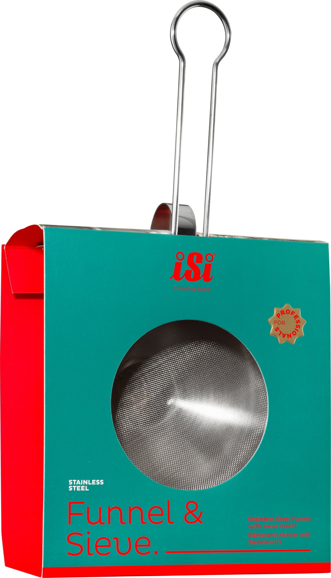 Az iSi által gyártott Tölcsér és Szita lehetővé teszi a rozsdamentes acél palackba történő, tiszta töltést. Kifejezetten az iSi Whipper termékekhez készült. A tölcsér kapacitása a szűrőhöz van igazítva, ezáltal megkönnyítve a munkát. A szűrőbetét átmérője 15 cm, szemcsemérete 0,5 mm. A termék 750 ml űrtartalmú, rozsdamentes acélból készült, és mosogatógépben tisztítható.