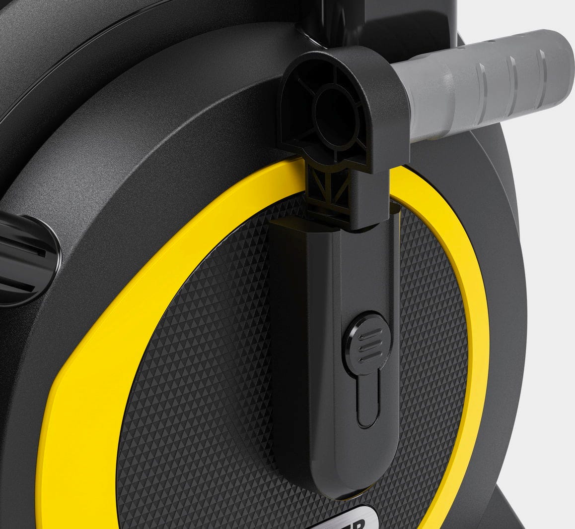 A beépített kerti tömlőkocsi egy ergonomikus hajtókarral működik, amelynek segítségével a tömlő egyenletesen és tisztán tekerhető fel a tömlődobra. A precíz tömlővezetés eközben megakadályozza a csomózódást vagy az egyenetlen feltekeredést. Ez megkönnyíti a kerti tömlő feltekerését, és gondoskodik a helytakarékos tárolásról az öntözés után.