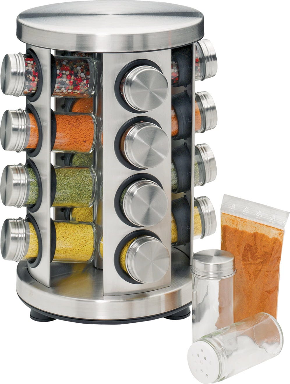 Küchenprofi Fűszertartó 16 üveggel, rozsdamentes acél, kerek