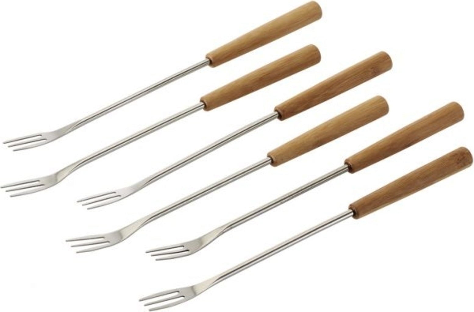 Ez a 6 kiváló minőségű sajtfondü villa praktikus bambusz fogantyúval van ellátva. Semmi sem állhat egy kellemes fondü-est útjába.