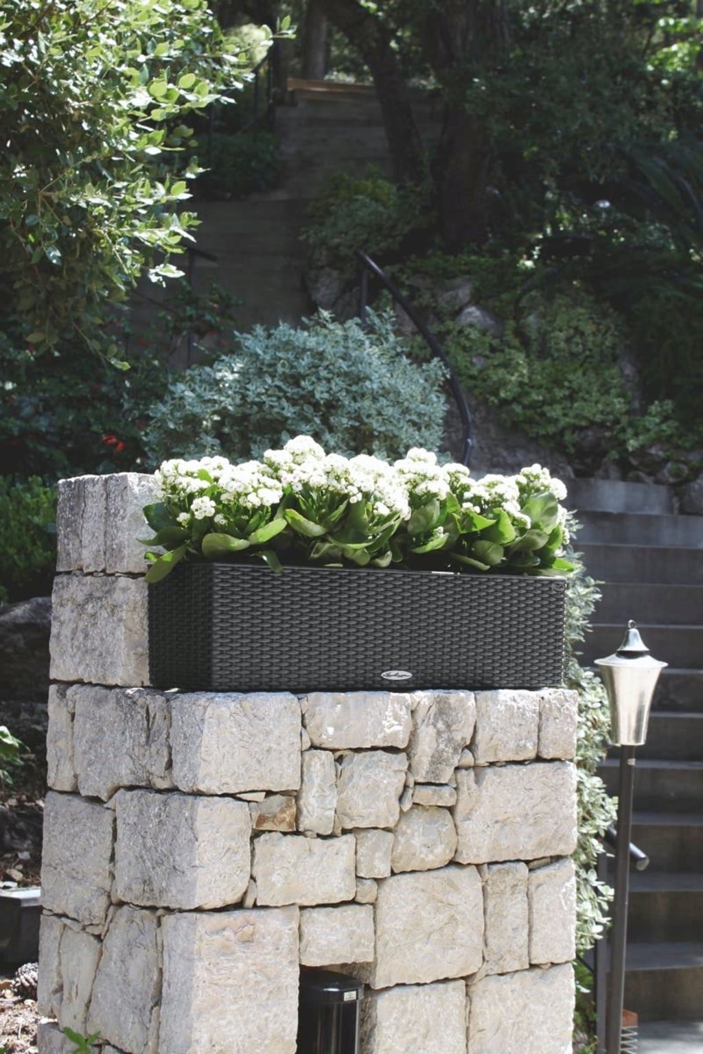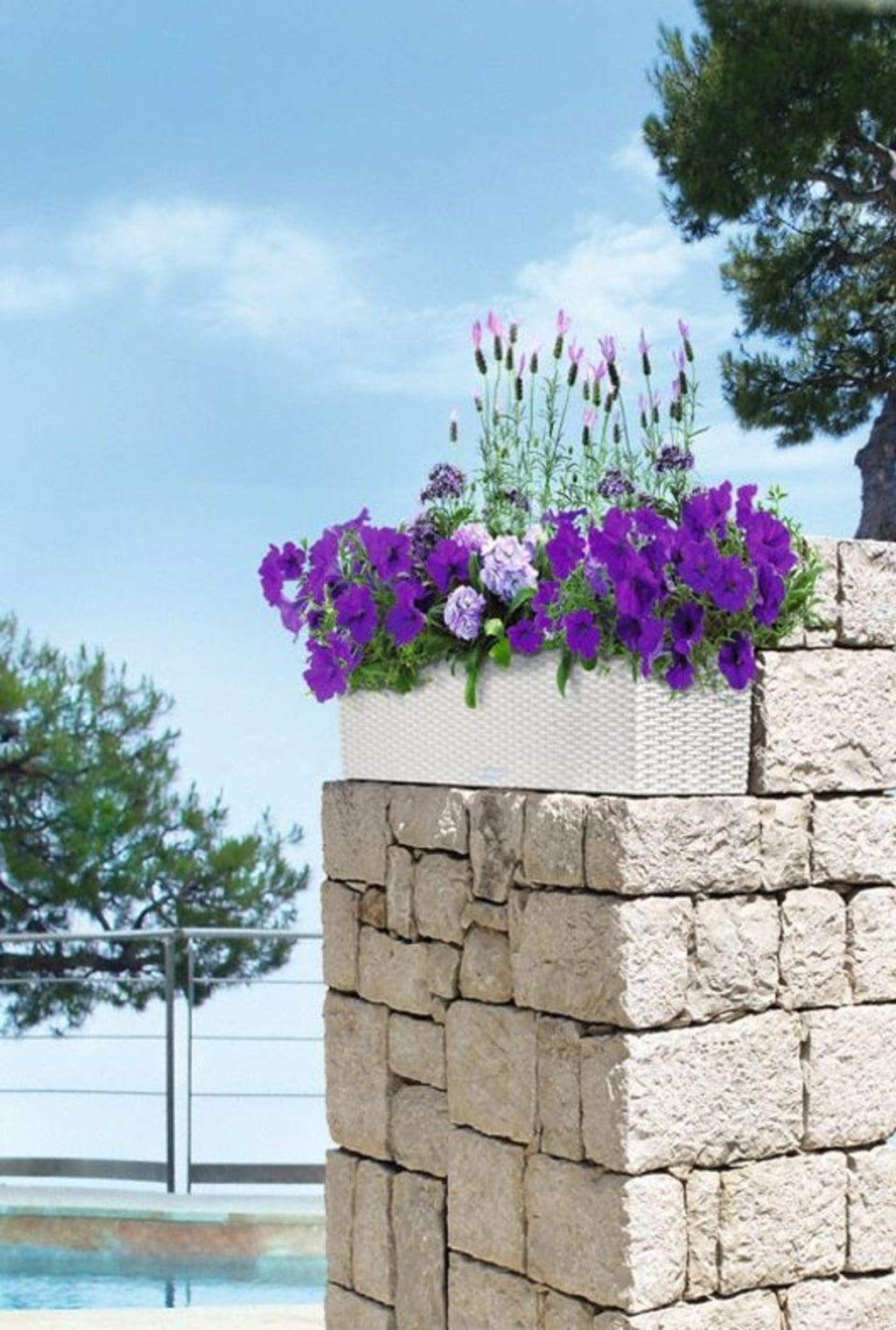 A romantikus vidéki ház stílus által ihletett "Balconera Cottage" virágtartó rengeteg helyet kínál a színes virágok számára. Az ötletes "All-in-One"-rendszer két kivehető betétjével és a Lechuza intelligens öntözőrendszerével a virágtartót egy abszolút kedvenccé teszi. Akár szabadon, akár az erkélykorláthoz rögzítve a külön megvásárolható tartókkal - az UV-álló polipropilénből készült növényláda mindig egy stílusos szemet gyönyörködtető.