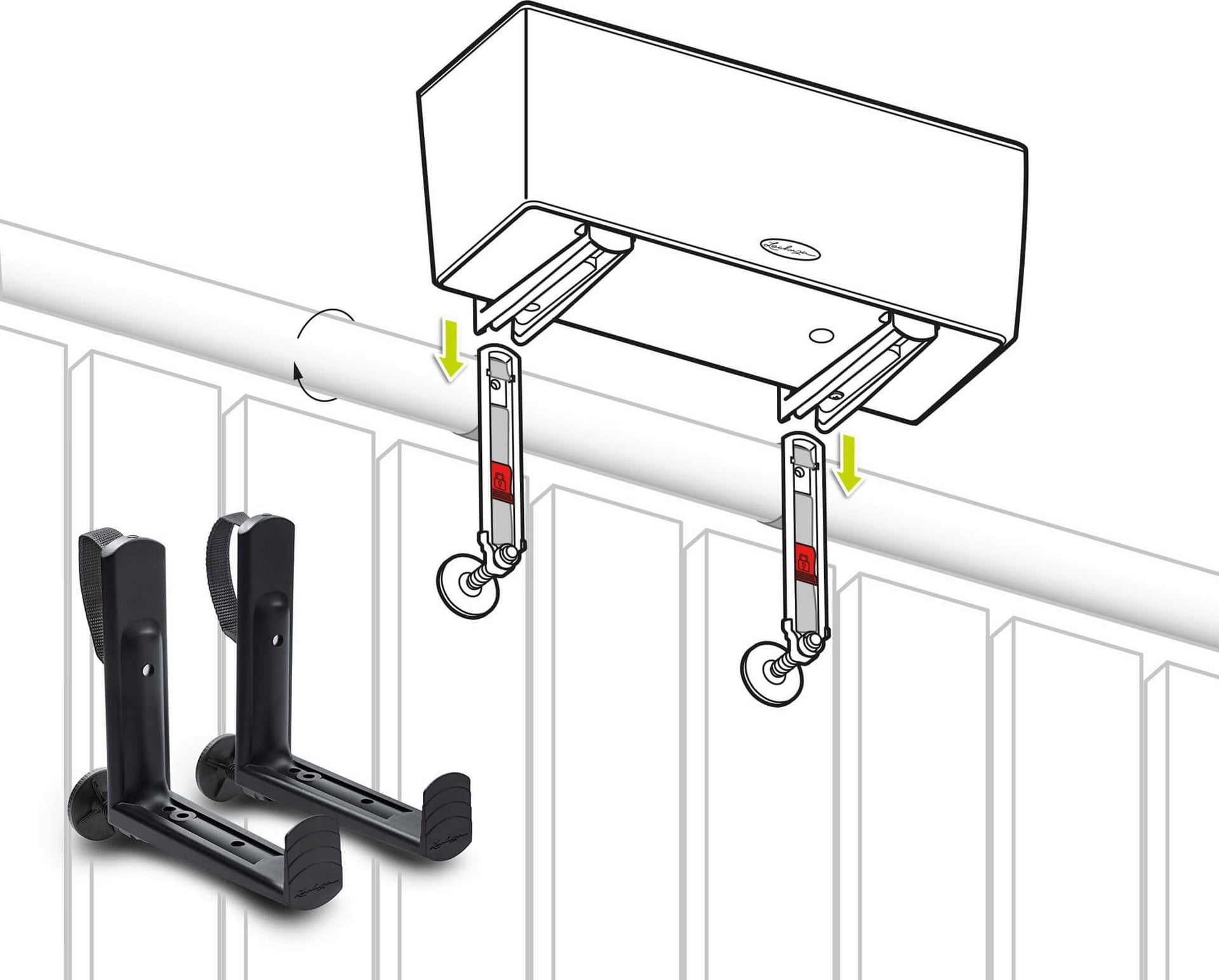 • LECHUZA erkélyláda tartó: Alkalmas a BALCONERA 50 és 80 típusokhoz, akár 38 cm kerületű erkélykorlátra és falra szerelhető.